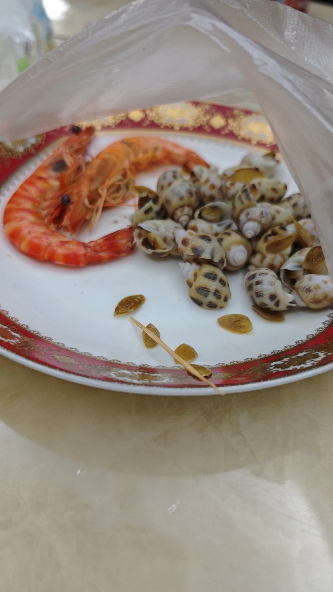 Seafood platter | ["shrimp","snails"] | ["shrimp:200g","snails:150g"] | |