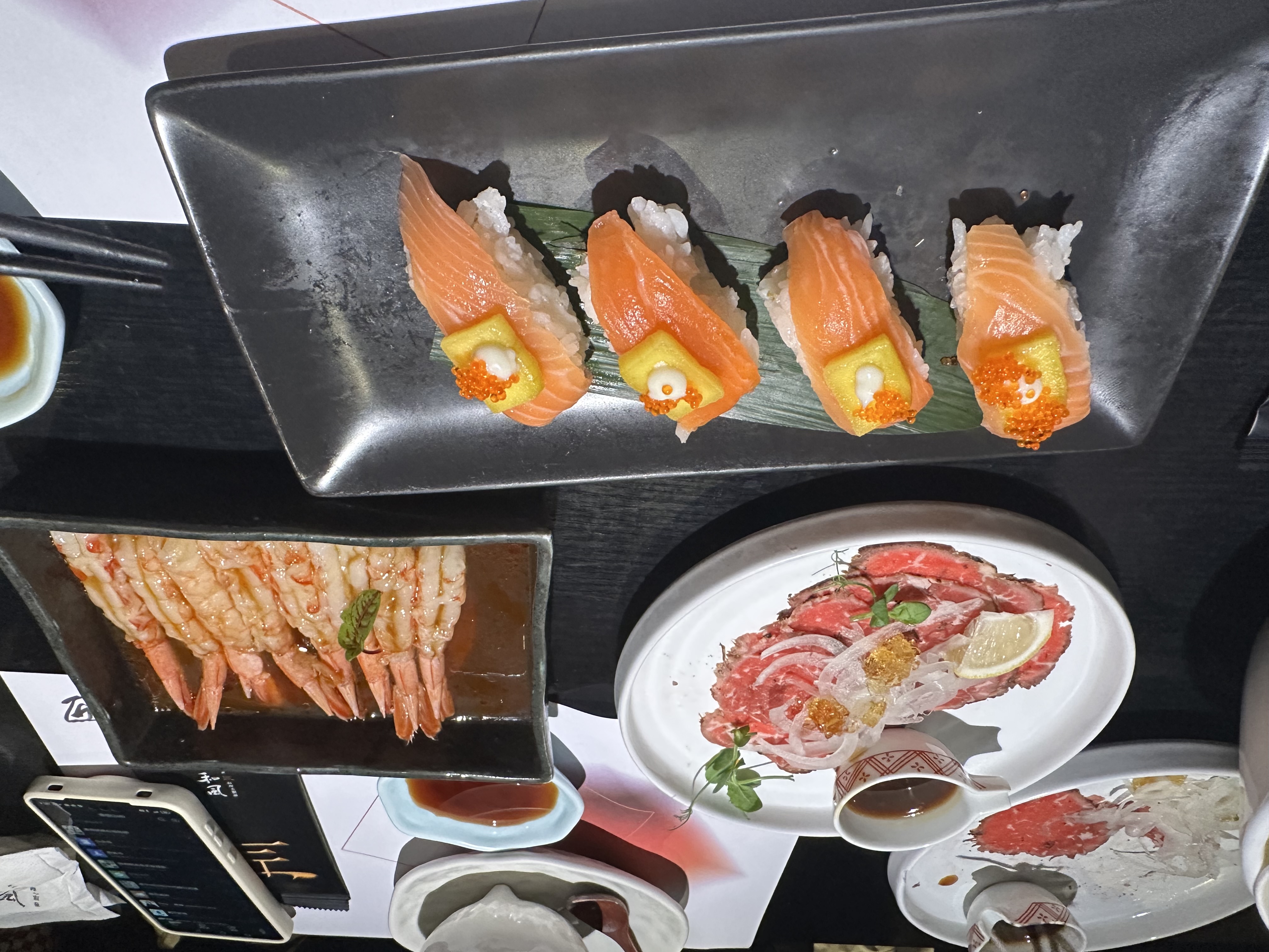 Sushi and Shrimp Platter | ["salmon","shrimp","sushi rice","seaweed","avocado","mayonnaise"] | ["sushi:200g","shrimp:150g"] | |