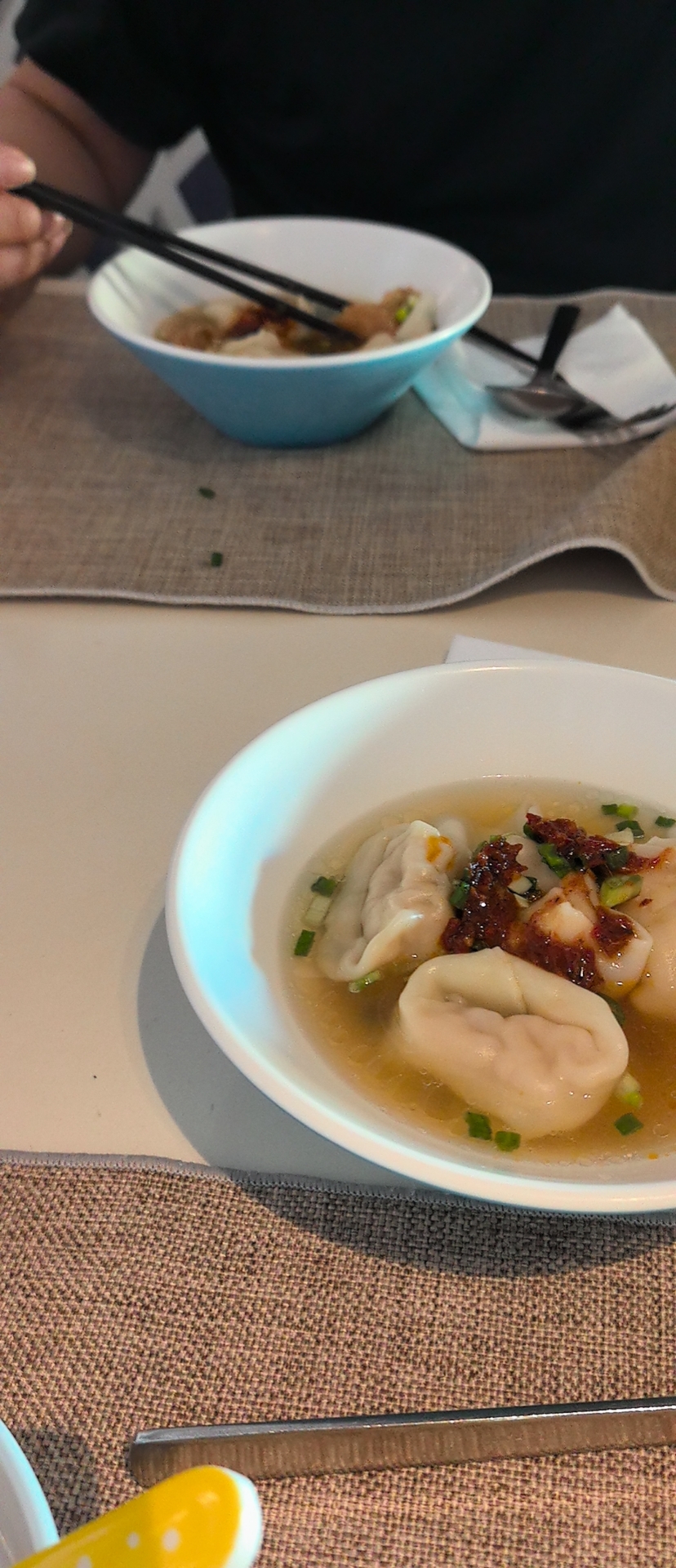 Dumplings in broth | ["dumplings","broth","green onions"] | ["dumplings:250g","broth:100g"] | |