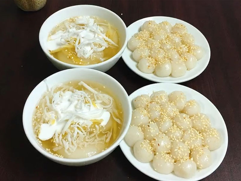 Sweet Rice Balls in Soup | ["sweet rice flour","sugar","coconut milk","sesame seeds","water"] | ["sweet rice balls:300g","soup:300g"] | |