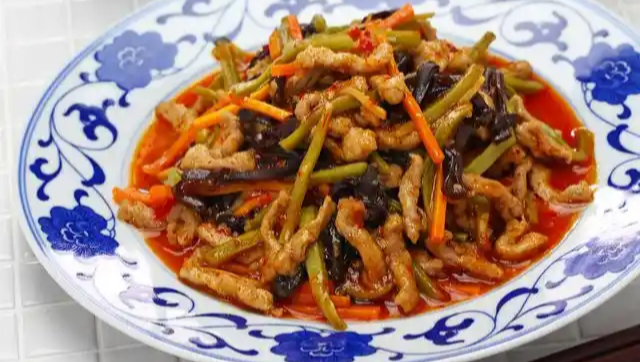 Stir-fried Pork with Vegetables | ["pork","green beans","carrots","black fungus","spices"] | ["pork:200g","vegetables:150g"] | |