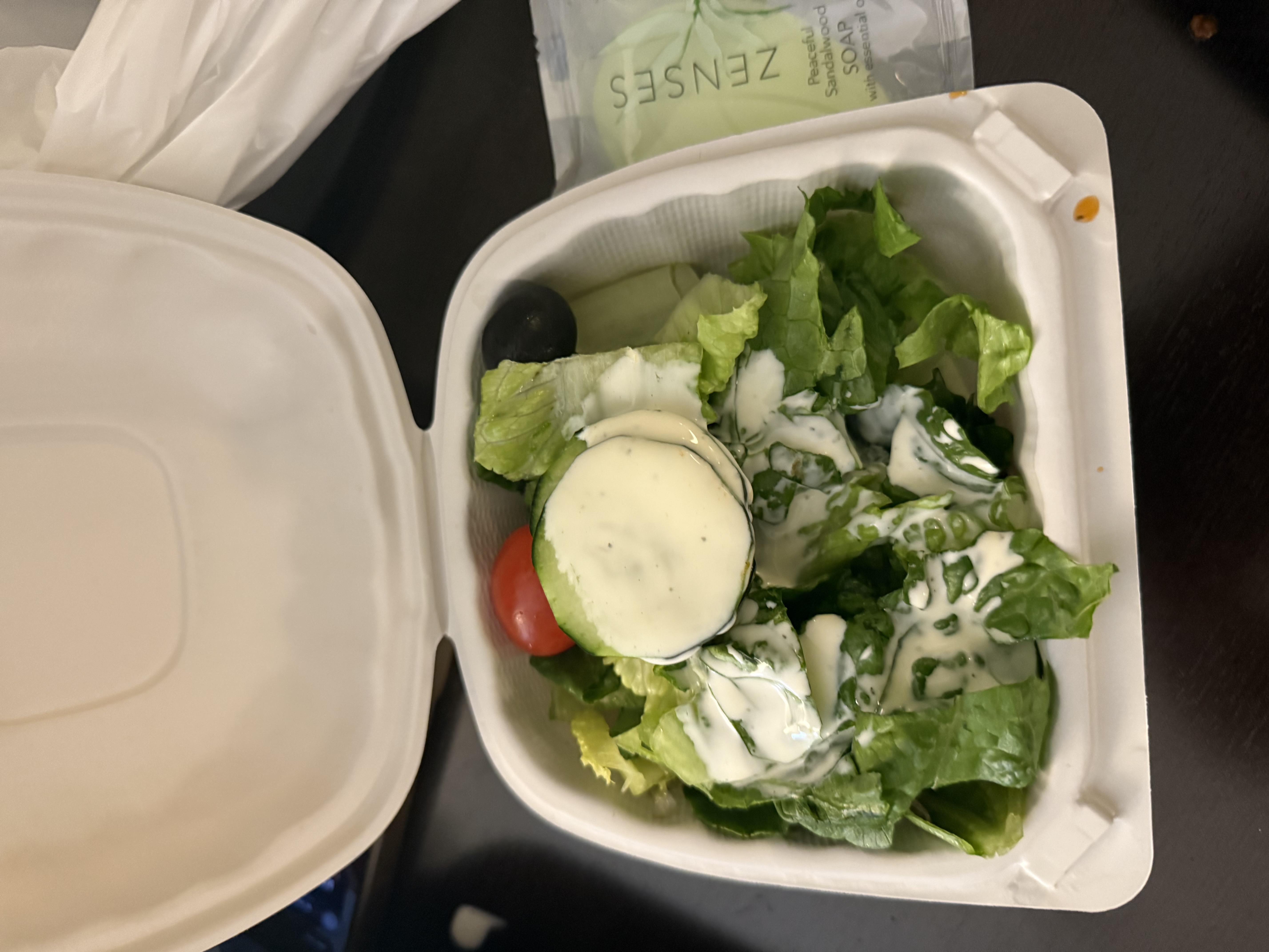 Garden Salad | ["lettuce","cucumber","tomato","dressing"] | ["lettuce:100g","cucumber:50g","tomato:30g","dressing:20g"] | |