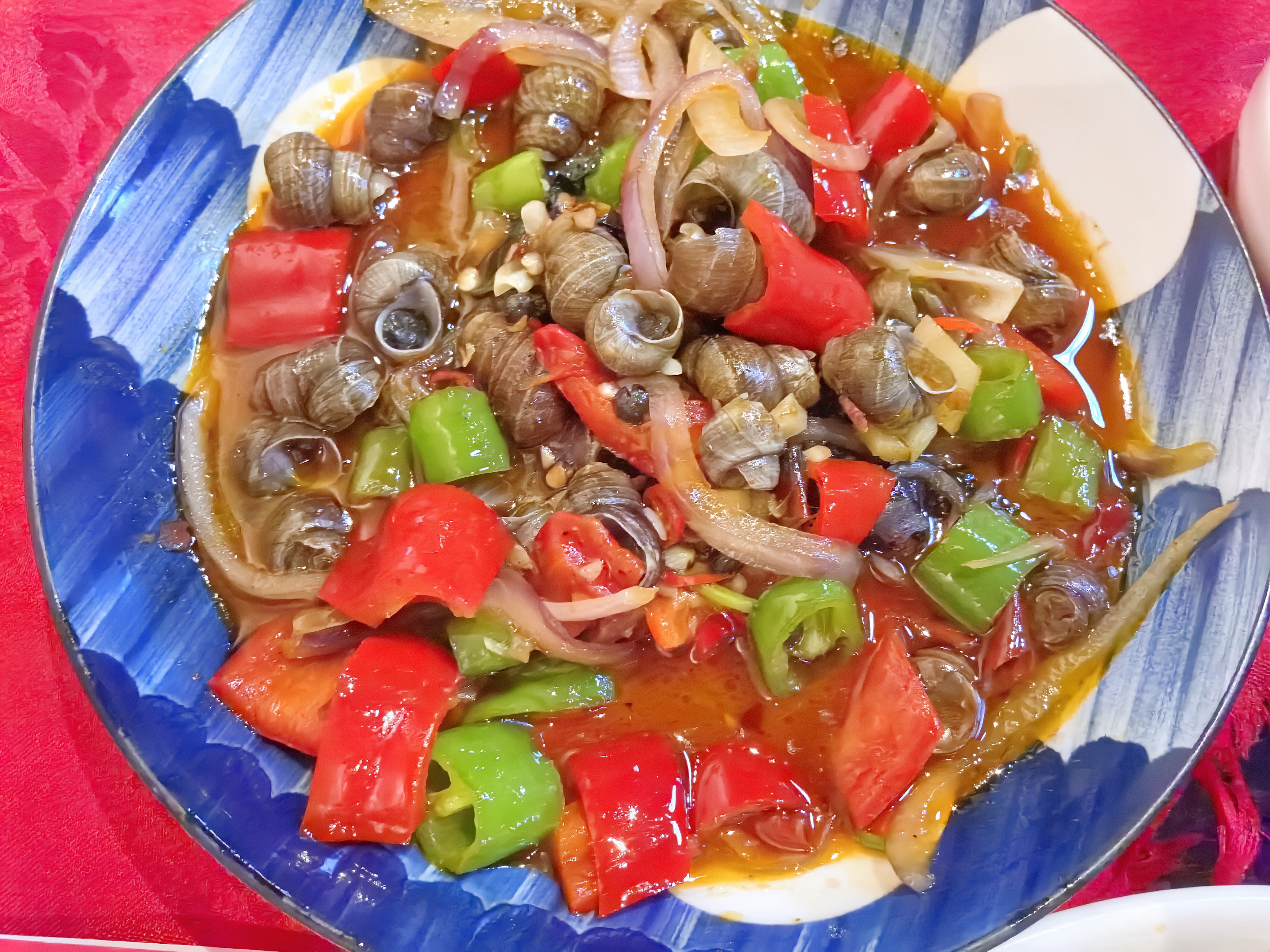 Stir-fried Shellfish with Vegetables | ["shellfish","bell peppers","onions","soy sauce","spices"] | ["shellfish:200g","bell peppers:150g","onions:50g"] | |
