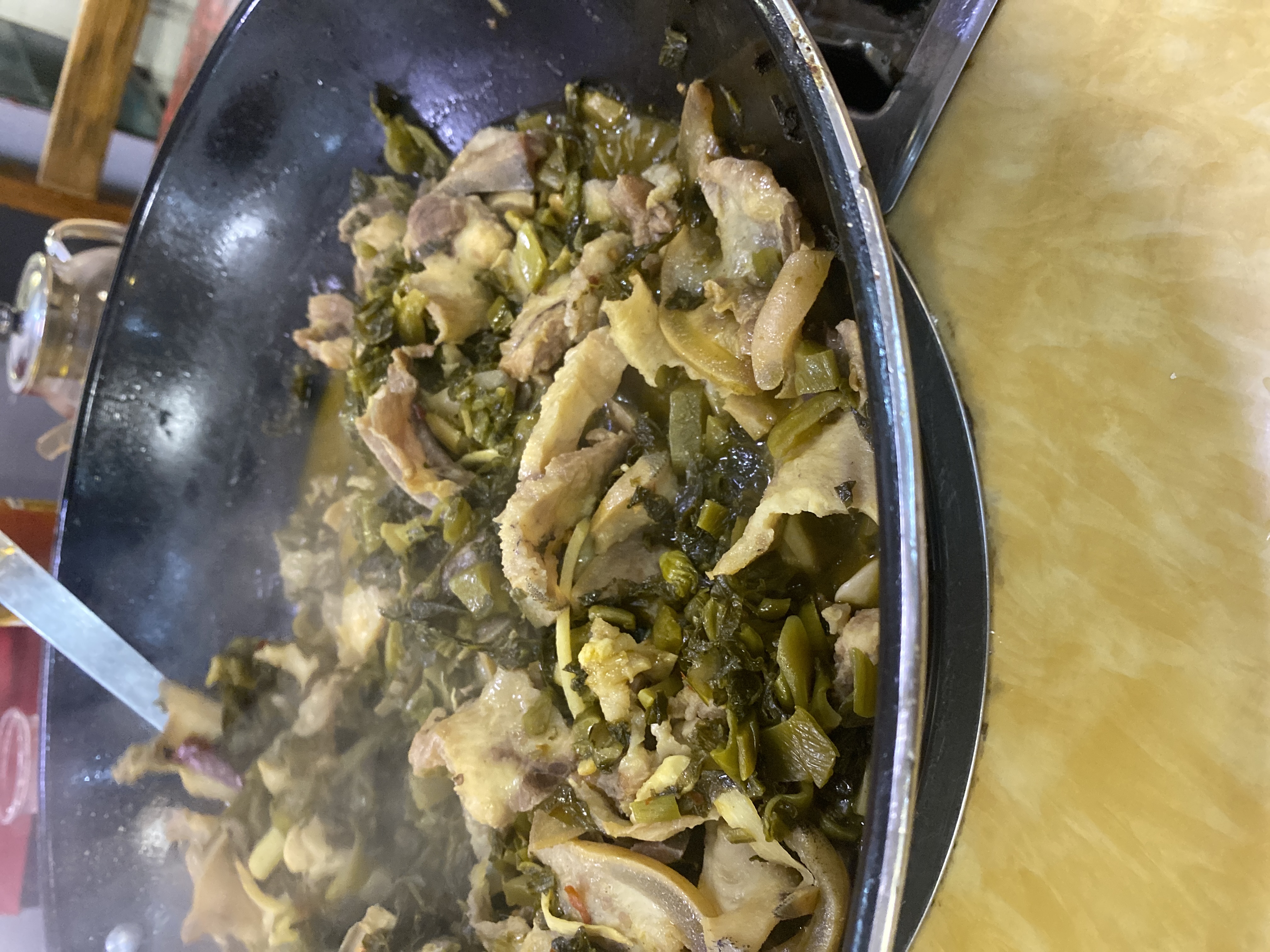 Stir-fried meat with greens | ["pork","greens","spices"] | ["meat:300g","greens:150g"] | |