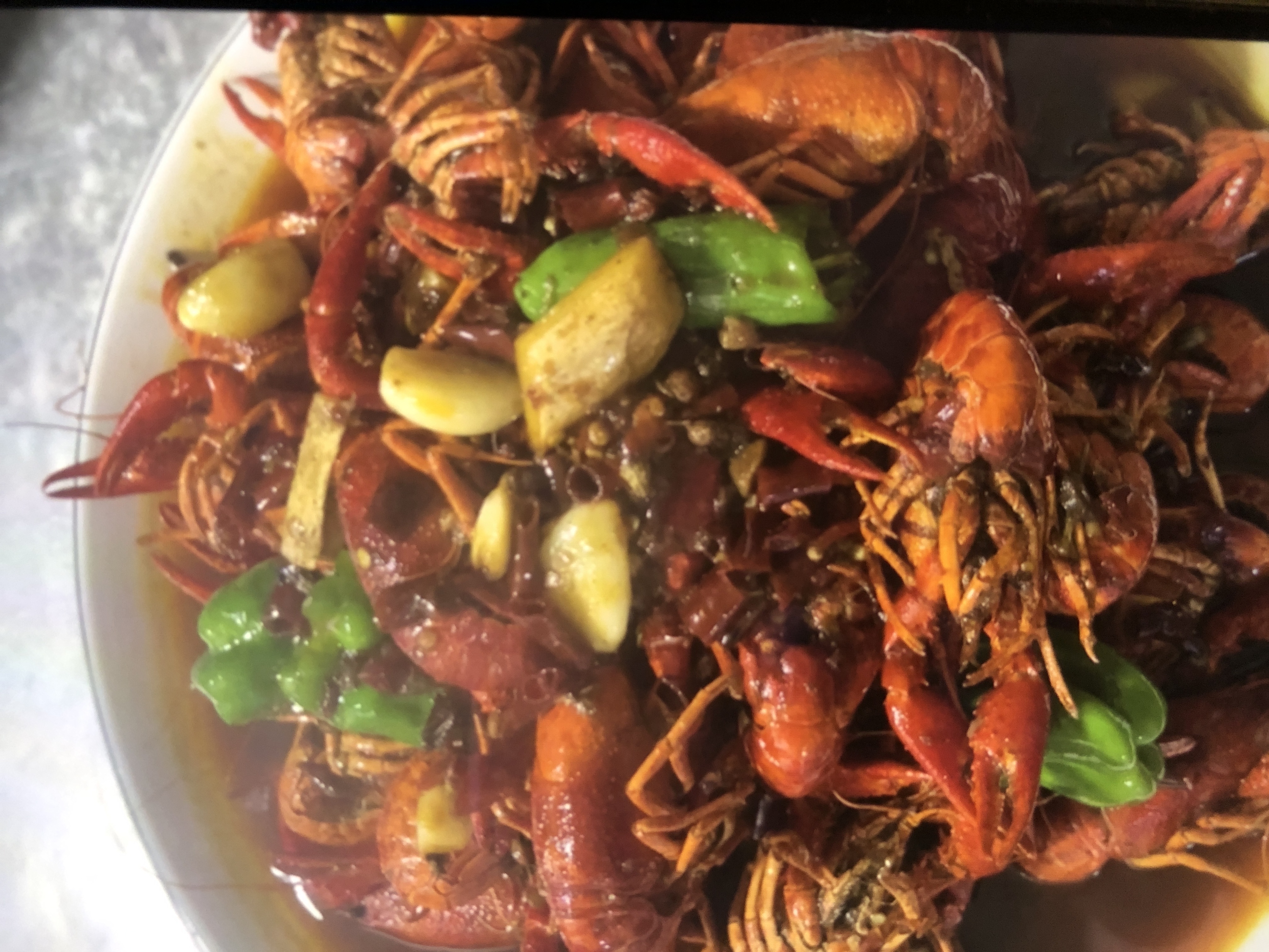 Spicy Crawfish | ["crawfish","green pepper","garlic","spices"] | ["crawfish:500g","green pepper:50g","garlic:20g"] | |