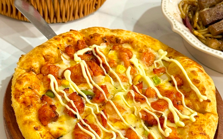 Pizza | ["pizza dough","chicken","mayonnaise","vegetables","cheese"] | ["pizza:300g"] |