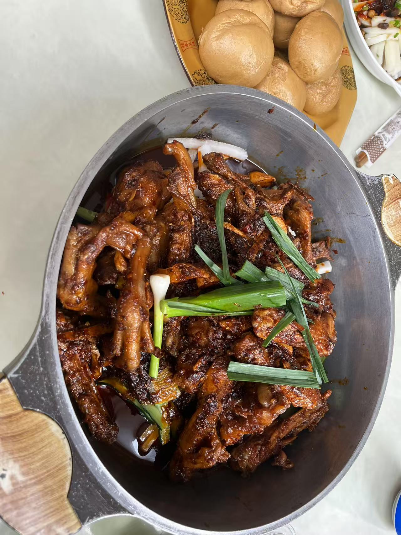 Braised Meat with Buns | ["meat","green onions","sauce","buns"] | ["meat:300g","buns:200g"] | |