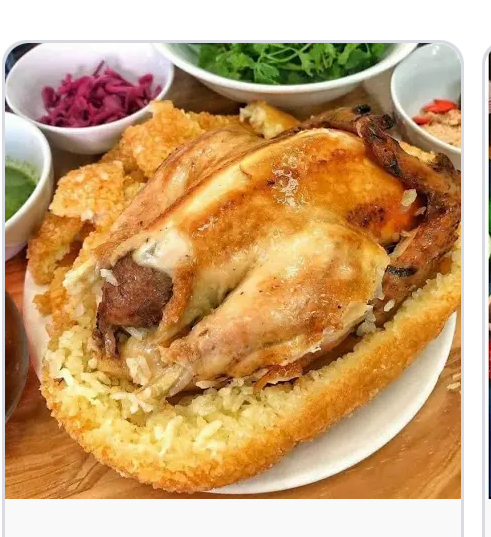 Roasted Chicken with Rice | ["roasted chicken","rice","crispy skin","vegetables","sauces"] | ["chicken:300g","rice:200g","sides:100g"] | |