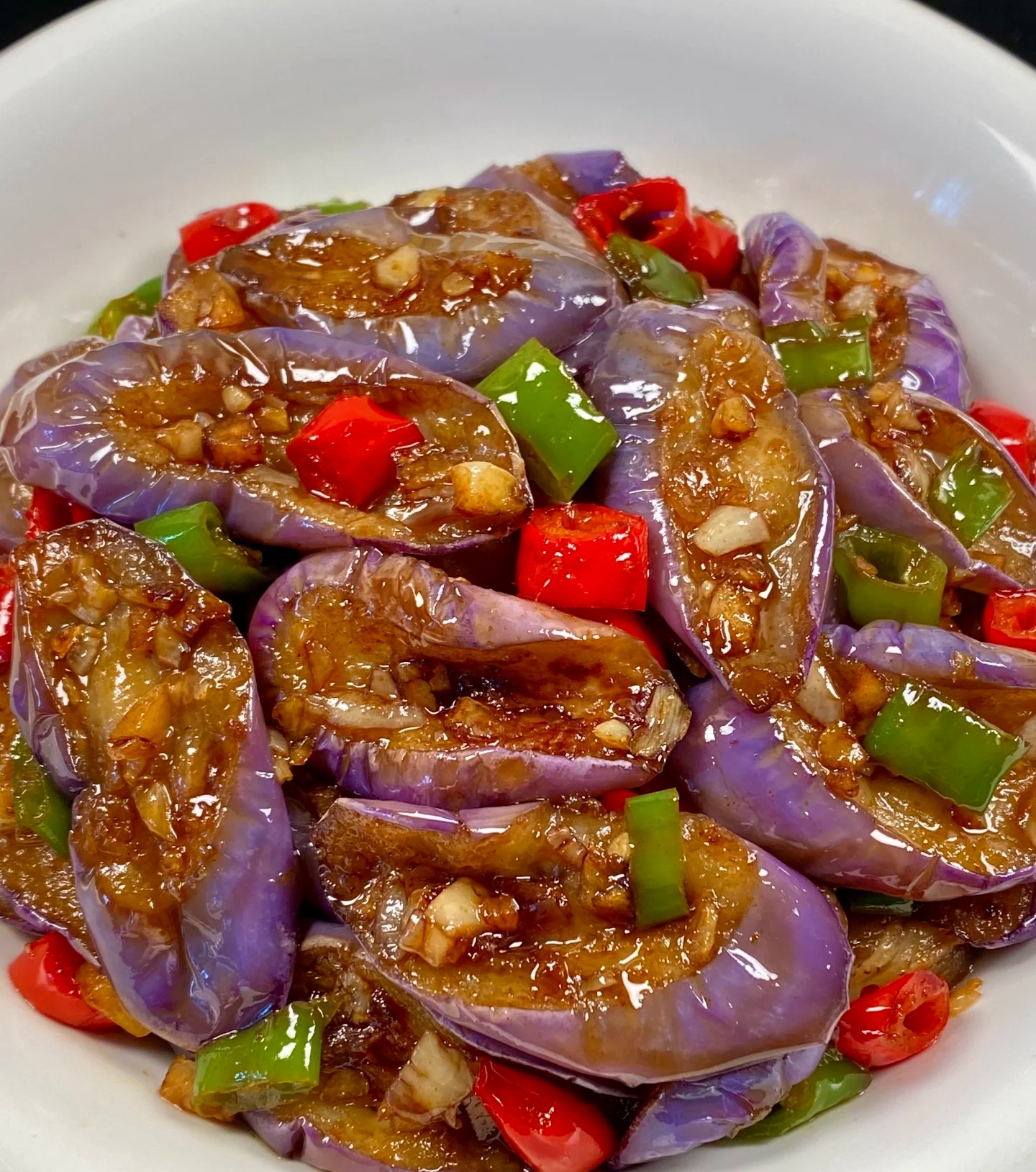 Stir-fried Eggplant | ["eggplant","bell pepper","onion","soy sauce","garlic"] | ["eggplant:300g","bell pepper:100g","onion:50g"] | |