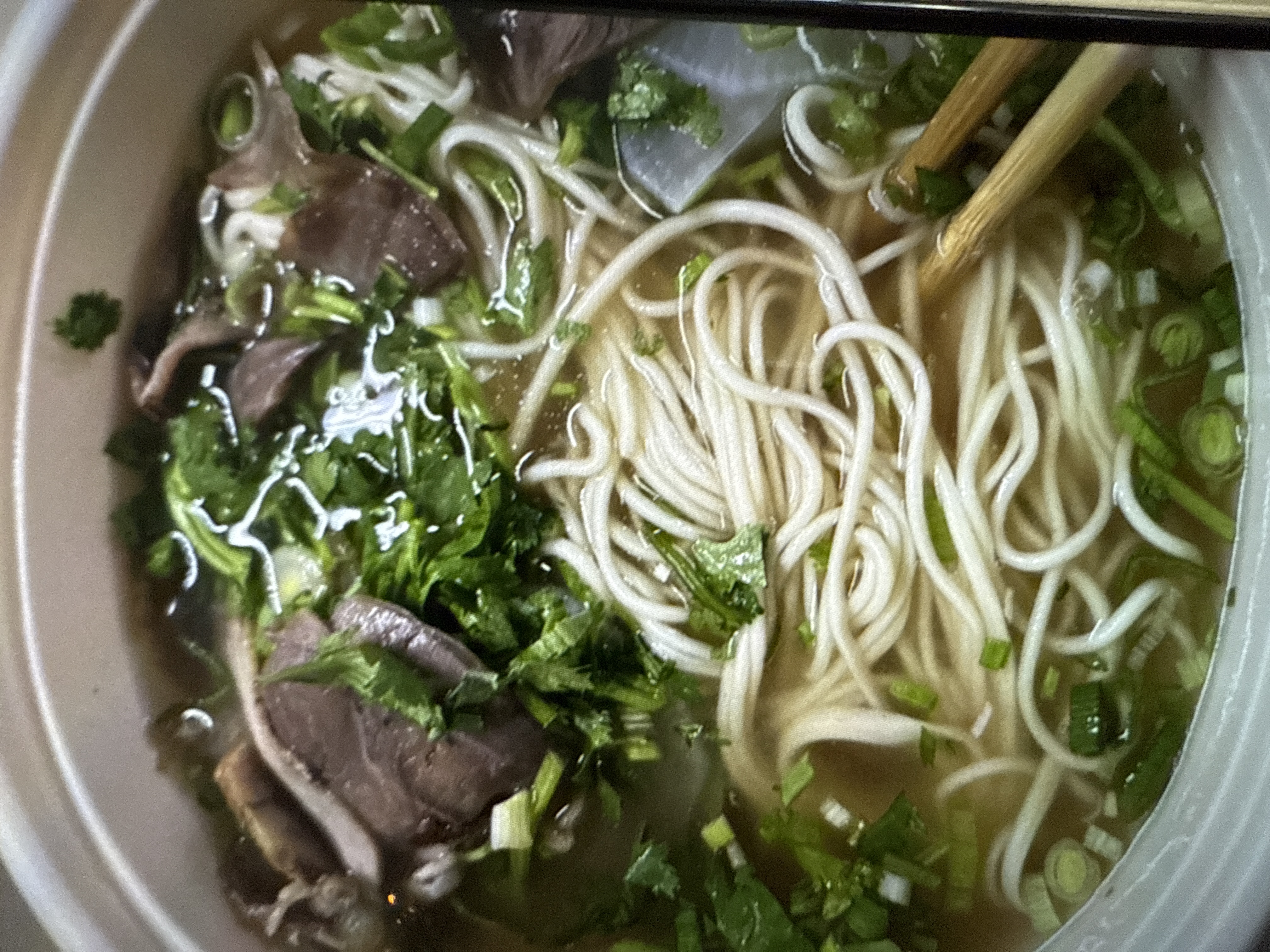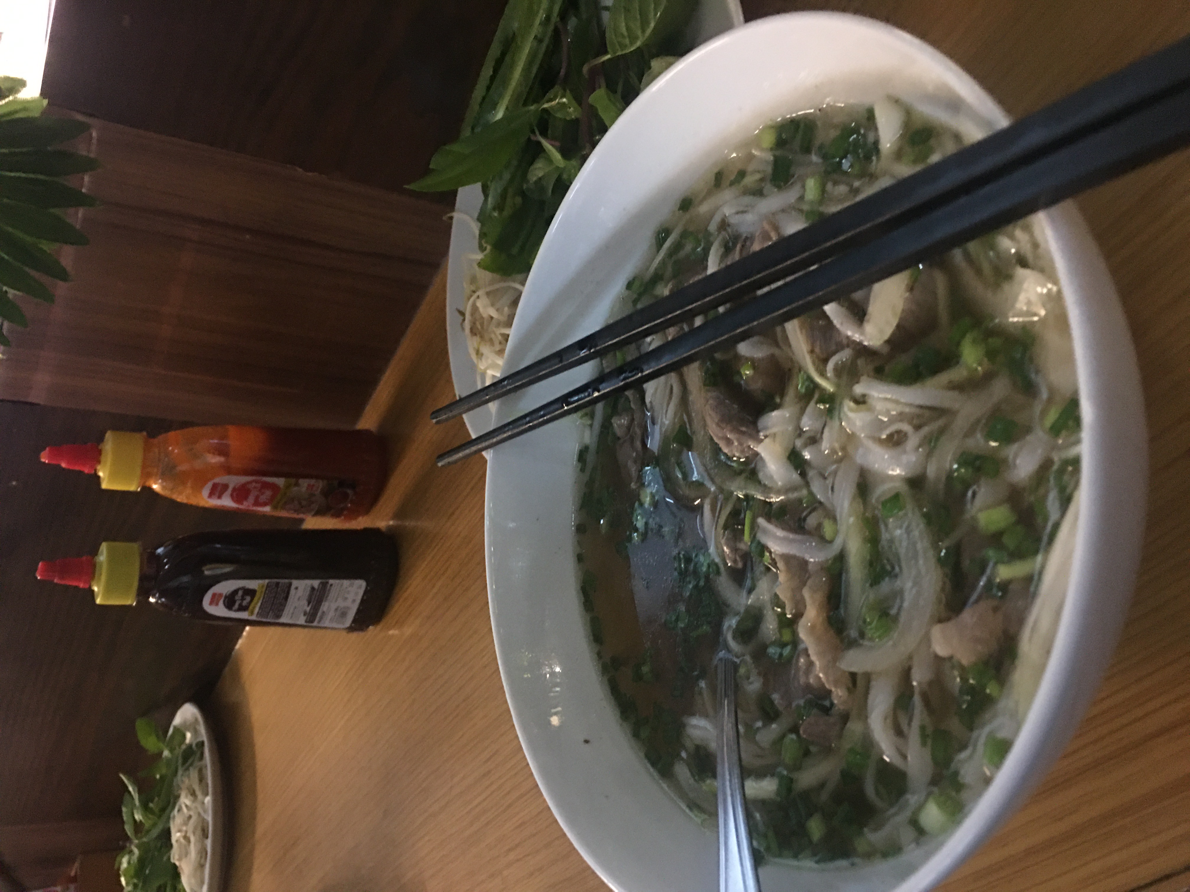 Pho | ["rice noodles","beef","broth","green onions","herbs"] | ["noodles:200g","beef:100g","broth:250ml"] |