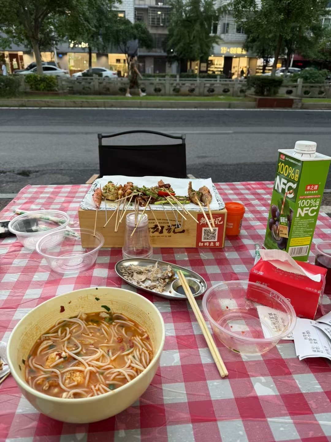 Noodle Soup with Skewers | ["noodles","broth","meat skewers","vegetables"] | ["noodles:300g","skewers:200g"] | |