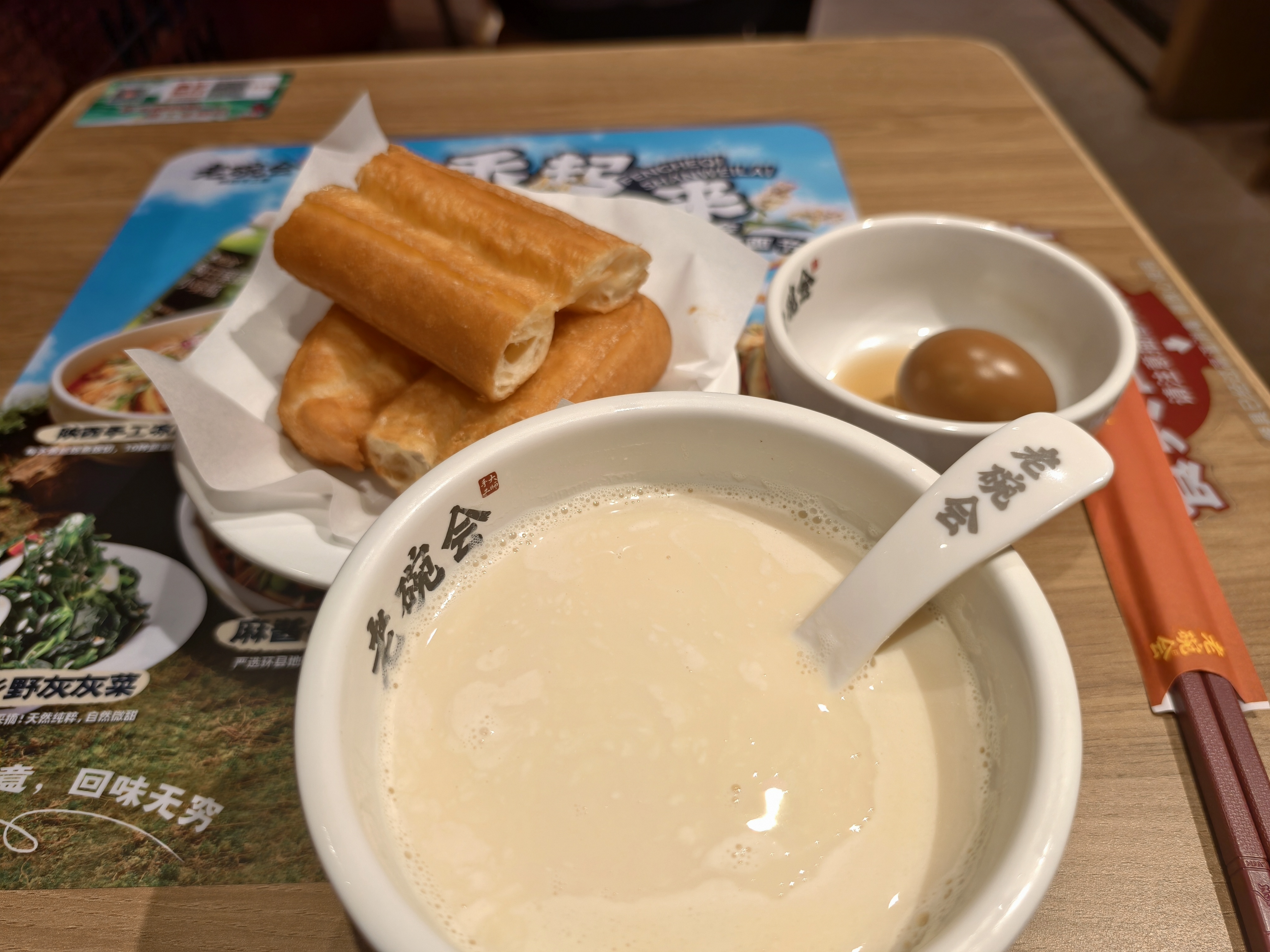 Soy Milk with Fried Dough Sticks | ["fried dough sticks","soy milk","preserved egg"] | ["fried dough sticks:150g","soy milk:250g","preserved egg:50g"] | |