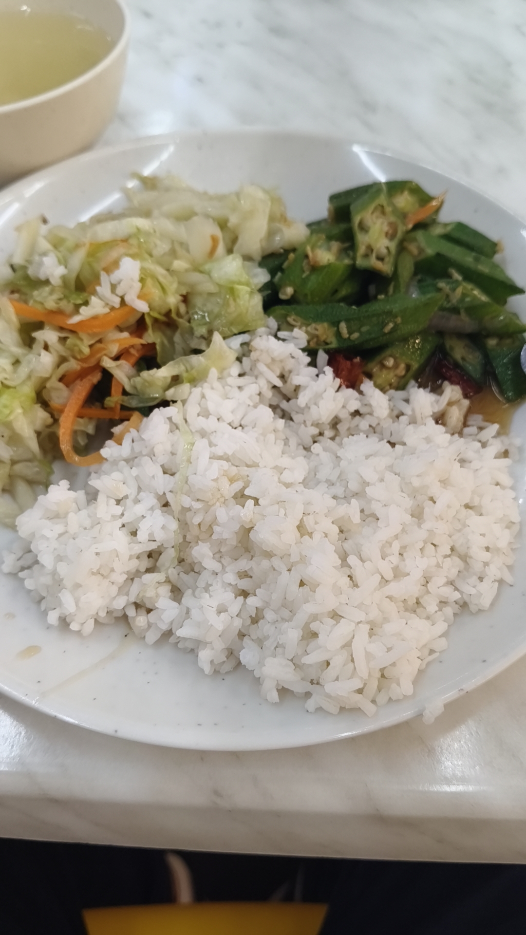 Vegetable Rice Plate | ["rice","cabbage","carrots","okra"] | ["rice:300g","vegetables:150g"] | |