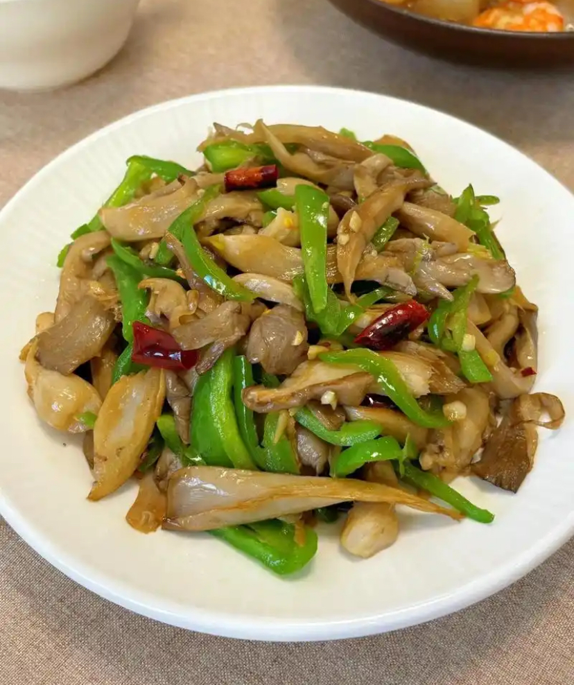 Stir-fried Mushrooms and Peppers | ["mushrooms","green peppers","onions","dried chili"] | ["mushrooms:200g","green peppers:100g","onions:50g"] | |