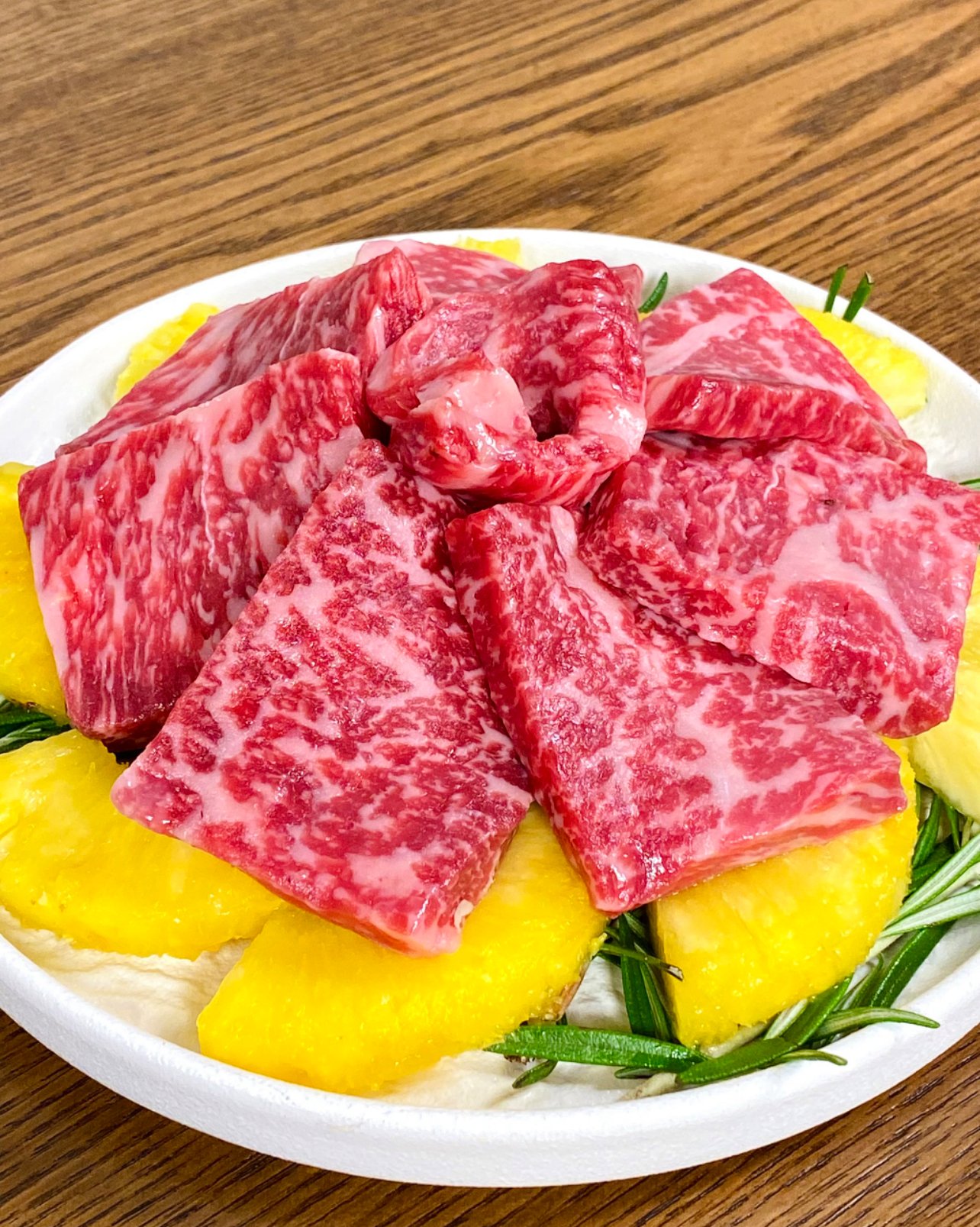 Wagyu Beef with Pineapple | ["Wagyu beef","pineapple","rosemary"] | ["beef:300g","pineapple:100g"] | |