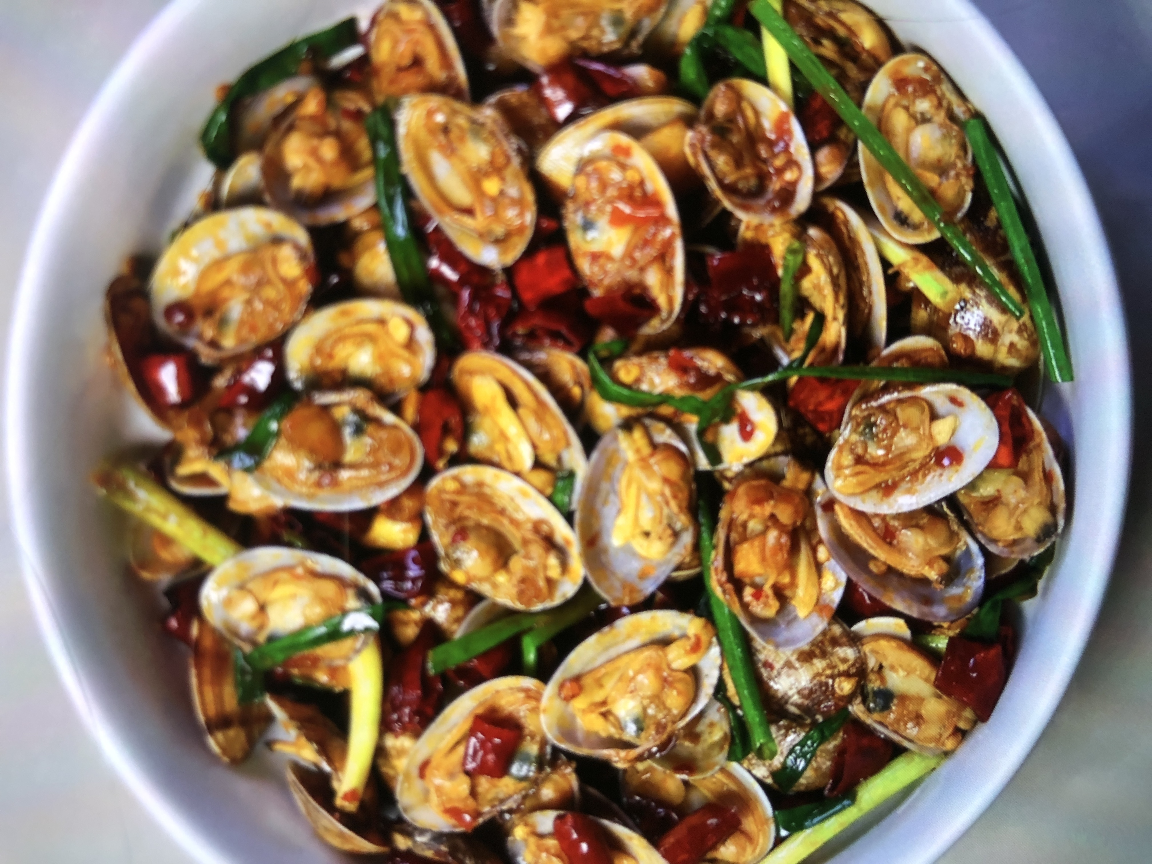 Spicy Clams | ["clams","green onions","chili peppers","garlic","soy sauce"] | ["clams:300g","green onions:50g","chili peppers:20g"] | |