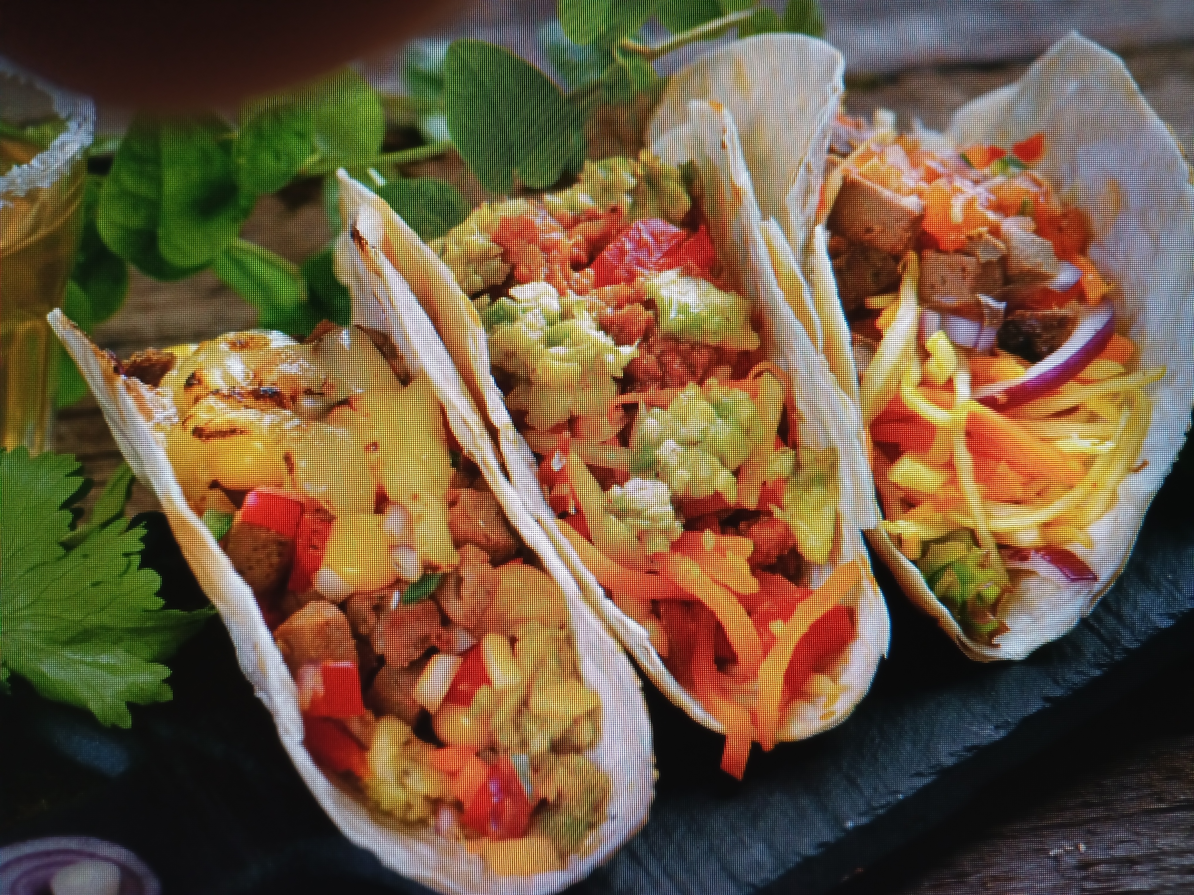 Tacos | ["tortilla","grilled chicken","guacamole","salsa","lettuce","cheese"] | ["tortilla:150g","meat:100g","vegetables:100g"] | |