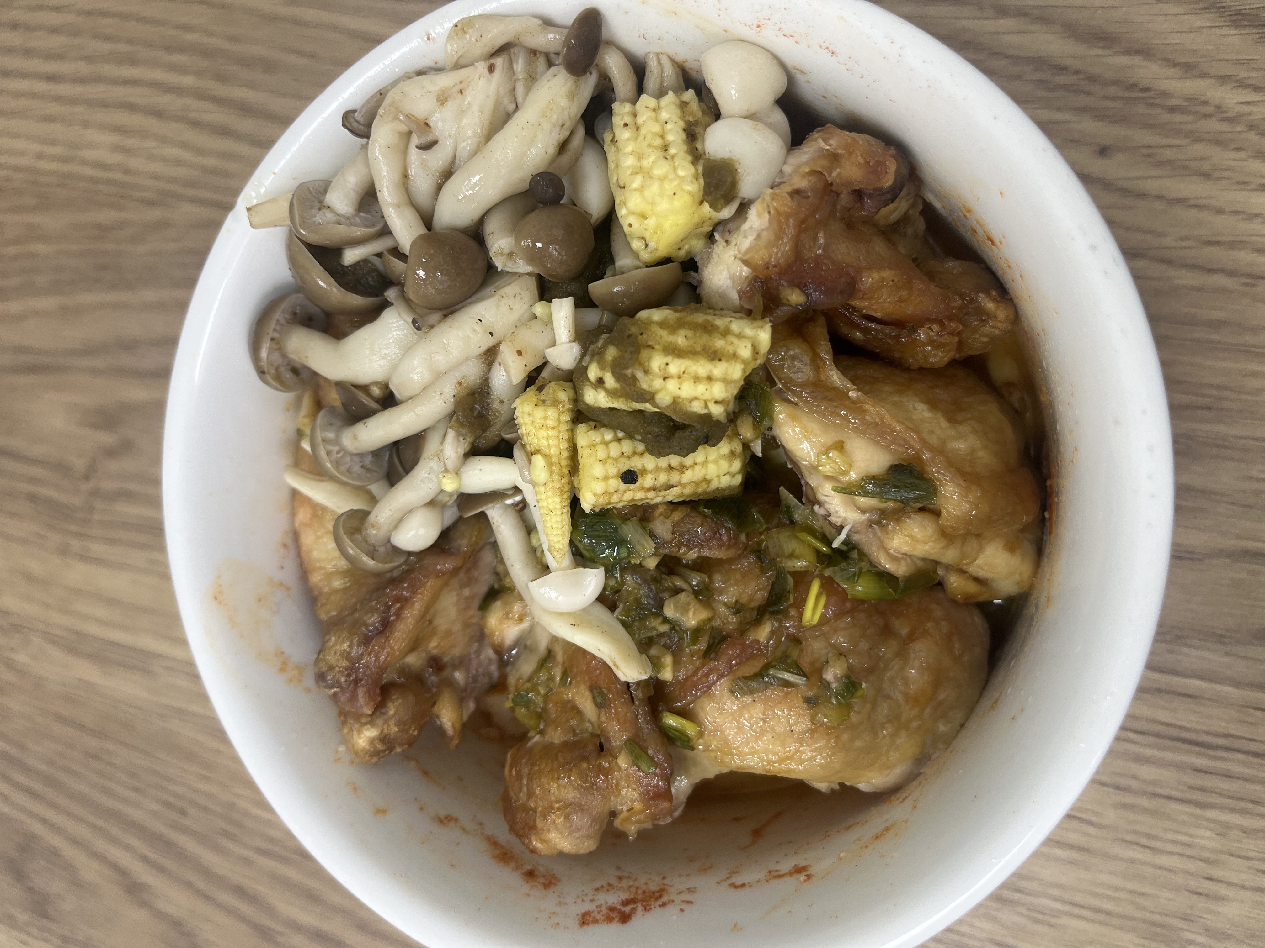Chicken with Vegetables | ["chicken","baby corn","mushrooms","herbs"] | ["chicken:300g","vegetables:150g"] | |