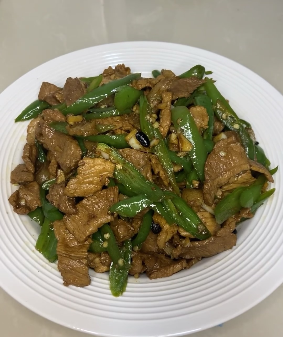 Beef and Green Pepper Stir-Fry | ["beef","green peppers","garlic","soy sauce"] | ["beef:300g","green peppers:150g"] | |