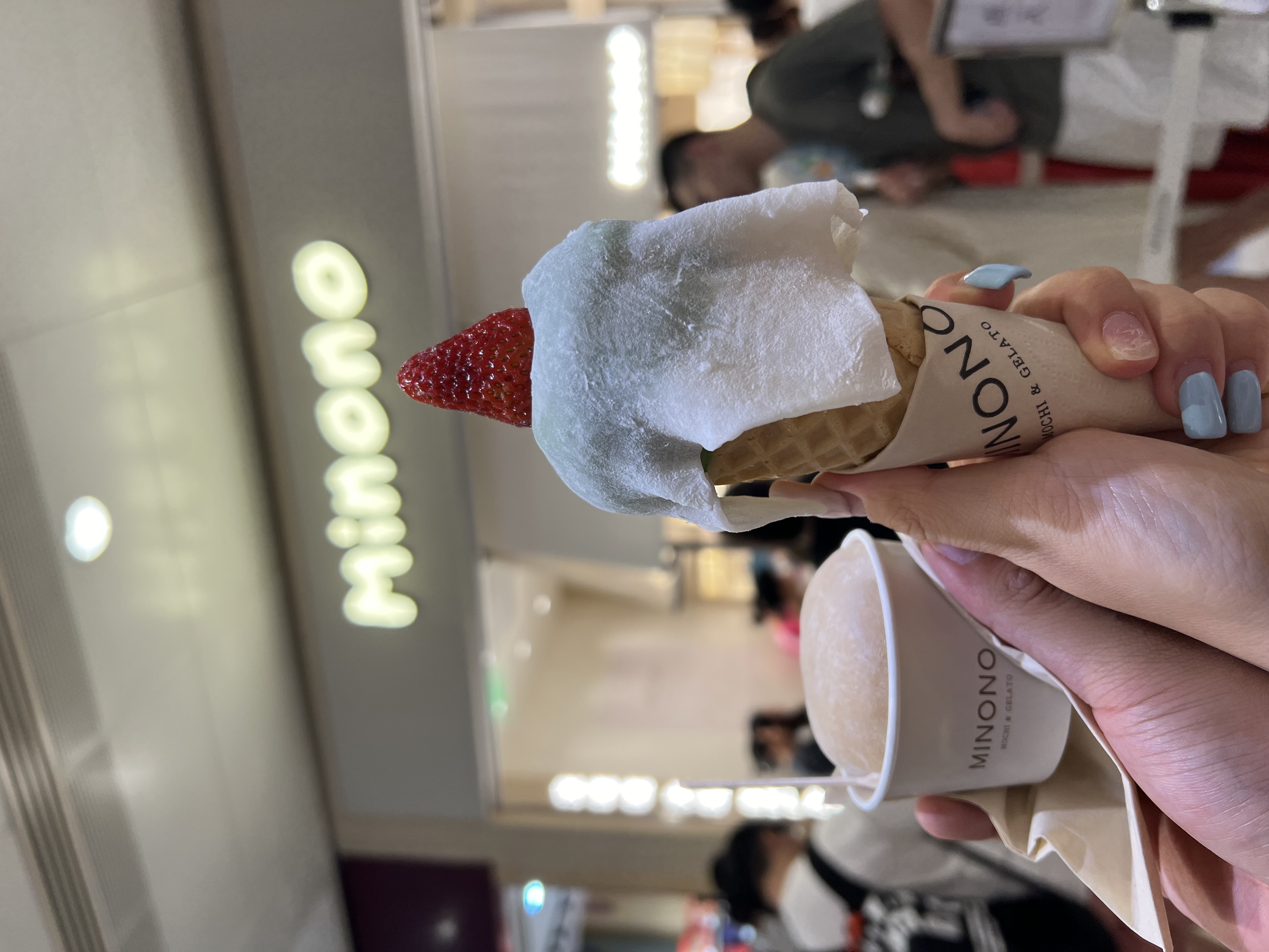 Ice Cream and Mochi | ["ice cream","mochi","wafer cone","strawberry"] | ["ice cream:150g","mochi:100g"] | |