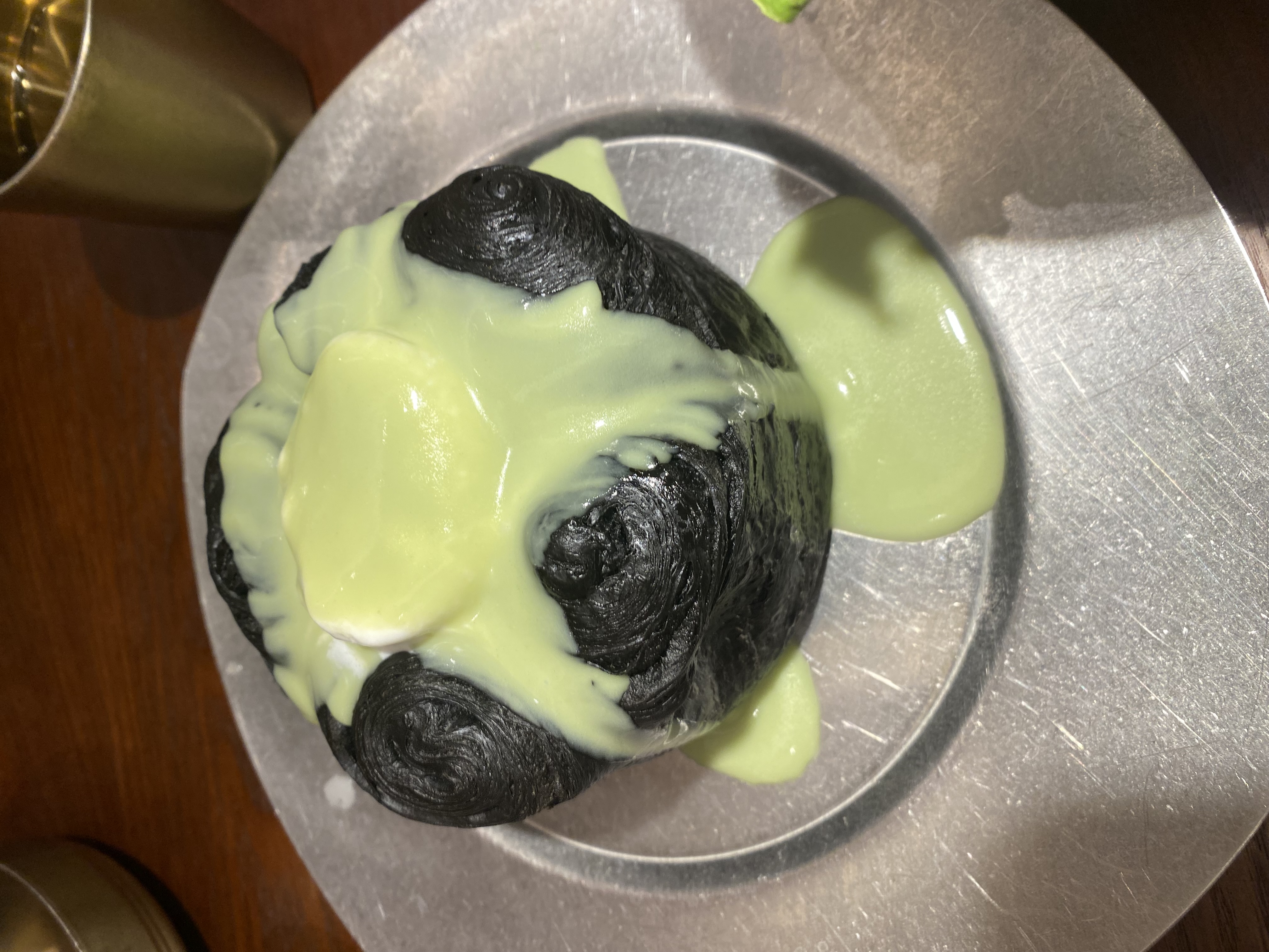 Green Cream Bread | ["bread","green filling (possibly made from nuts or legumes)"] | ["bread:100g","green filling:50g"] | |