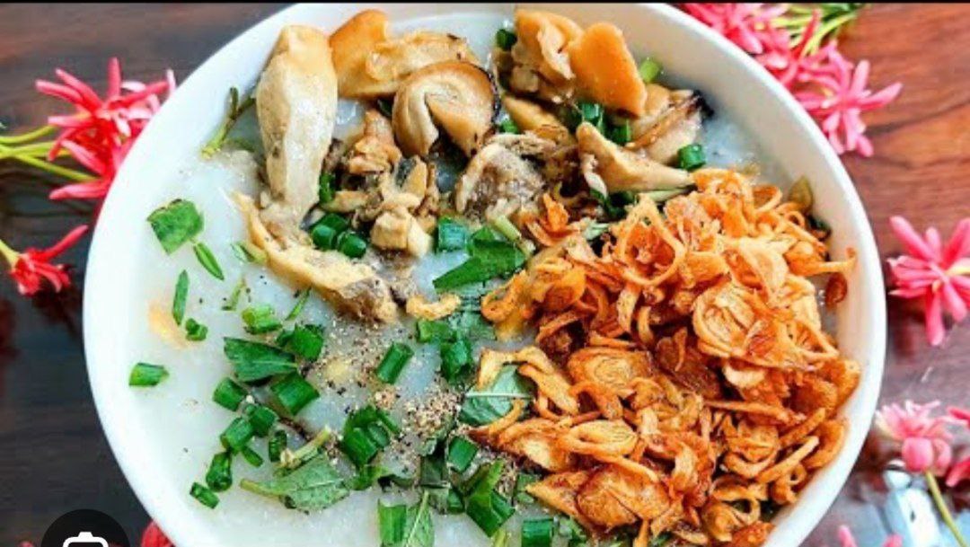 Rice Porridge | ["rice","chicken","green onions","fried onions"] | ["rice:200g","chicken:100g","green onions:20g","fried onions:30g"] | |