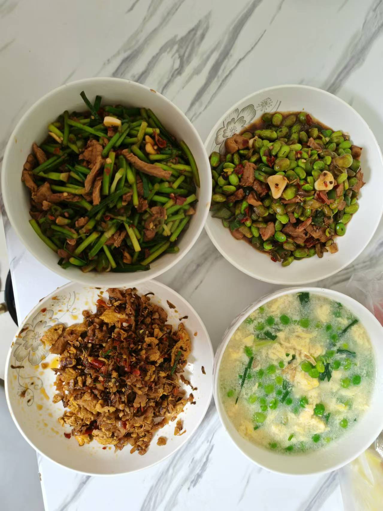 Mixed Stir-Fry | ["beef","green onions","garlic","peas","egg"] | ["beef:200g","vegetables:300g"] | |