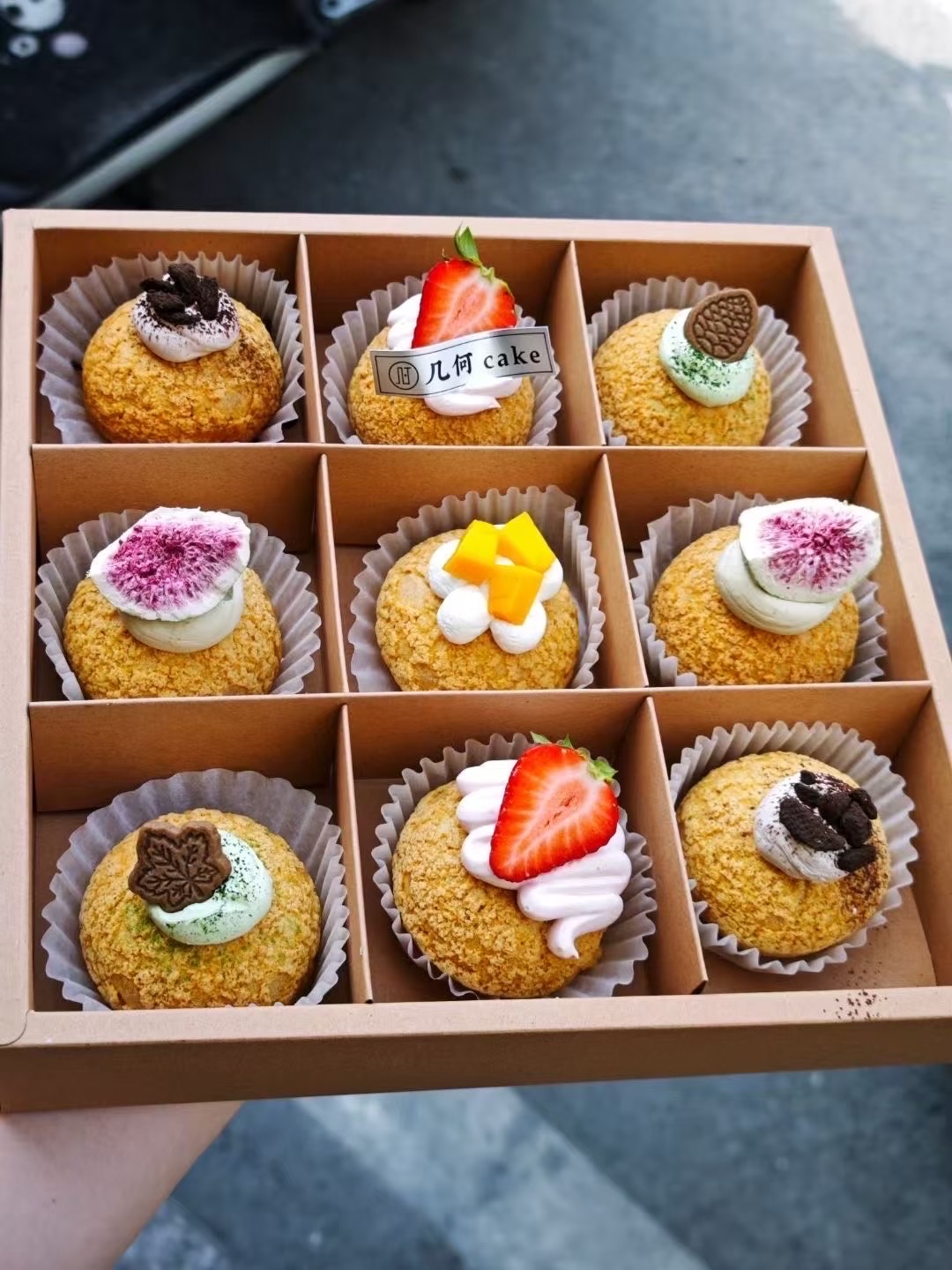 Assorted Cream Puffs | ["flour","cream","sugar","fruit toppings"] | ["cream puff: 100g"] | |