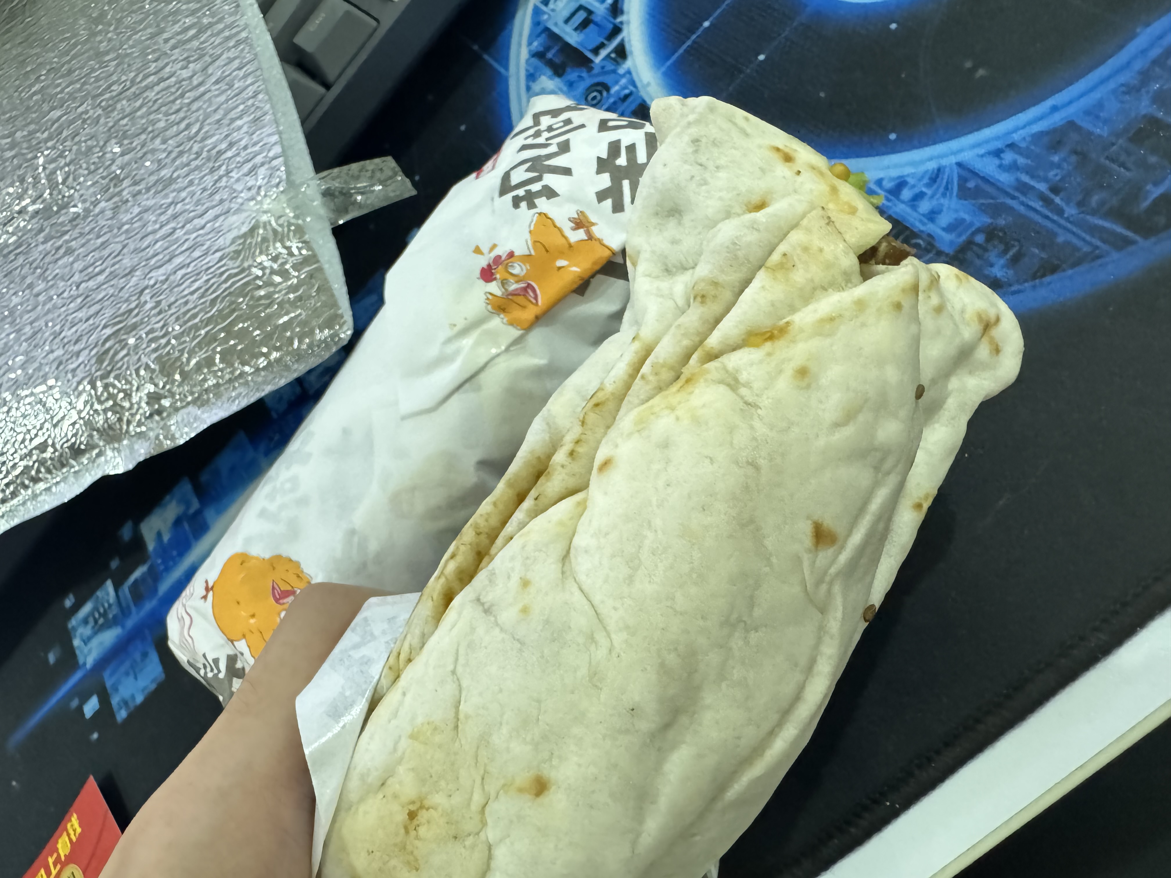 Wrap or Burrito | ["tortilla","meat","vegetables","sauce"] | ["tortilla:200g","meat:150g","vegetables:50g"] | |