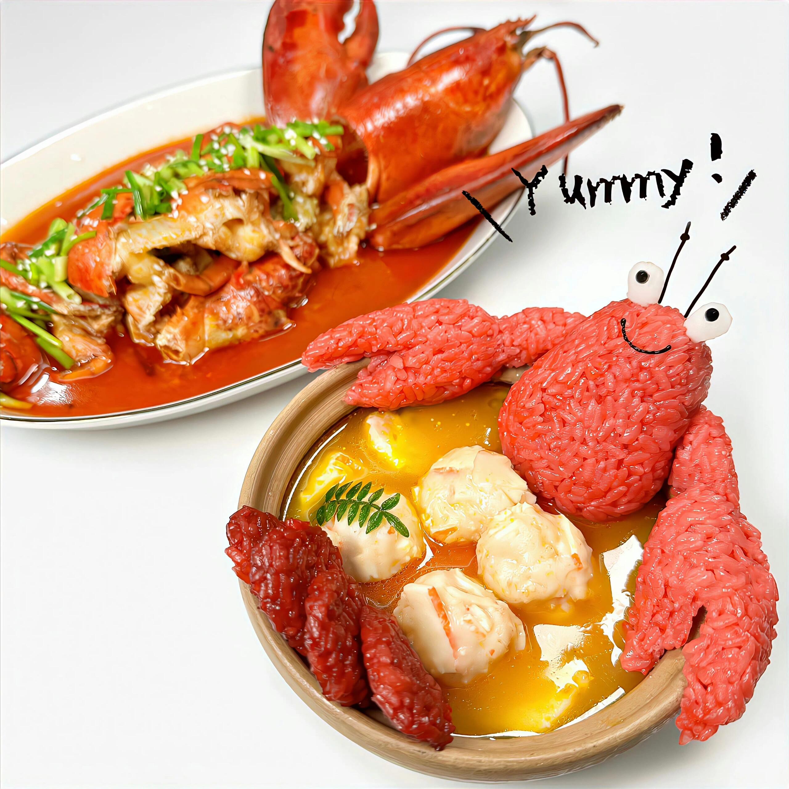 Lobster and Crab Rice | ["lobster","rice","sauce","vegetables"] | ["lobster:300g","rice:200g","sauce:50g"] | |