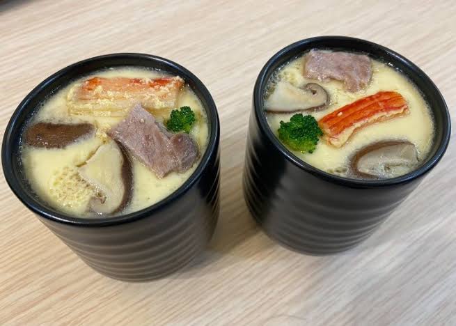 Chawanmushi | ["egg","broccoli","crab","mushrooms"] | ["egg:200g","broccoli:50g","crab:50g","mushrooms:50g"] | |
