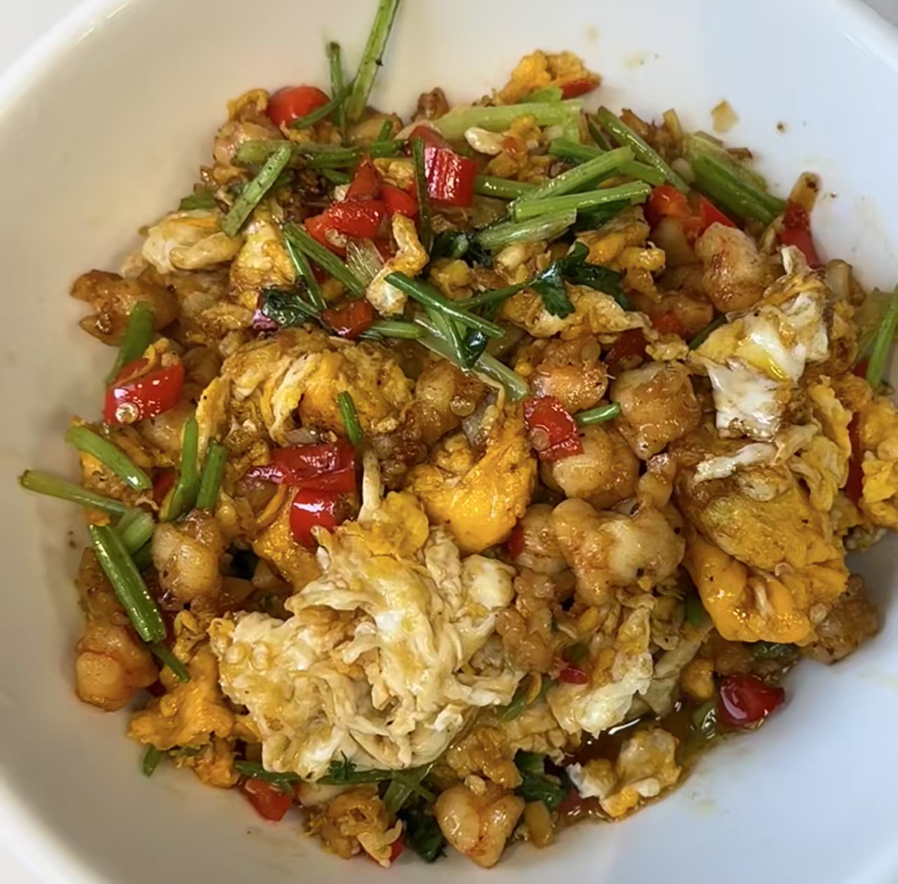 Stir-fried Egg with Vegetables | ["egg","red bell pepper","green onion","cilantro"] | ["egg:200g","vegetables:150g"] | |
