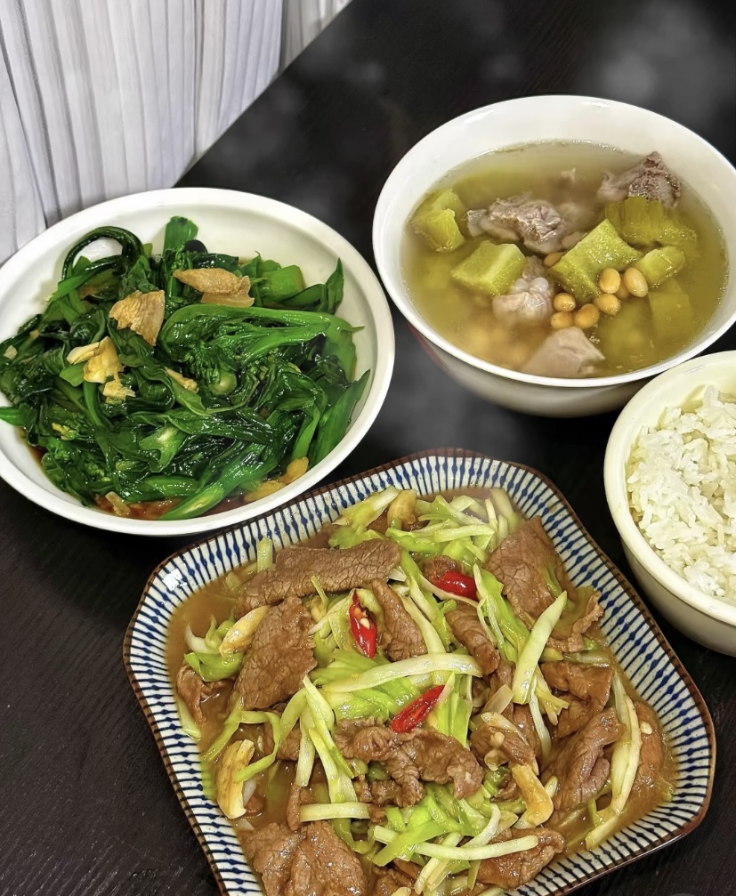 Stir-fried beef with vegetables and rice | ["beef","bok choy","rice","garlic","chili"] | ["beef:200g","vegetables:150g","rice:150g"] | |
