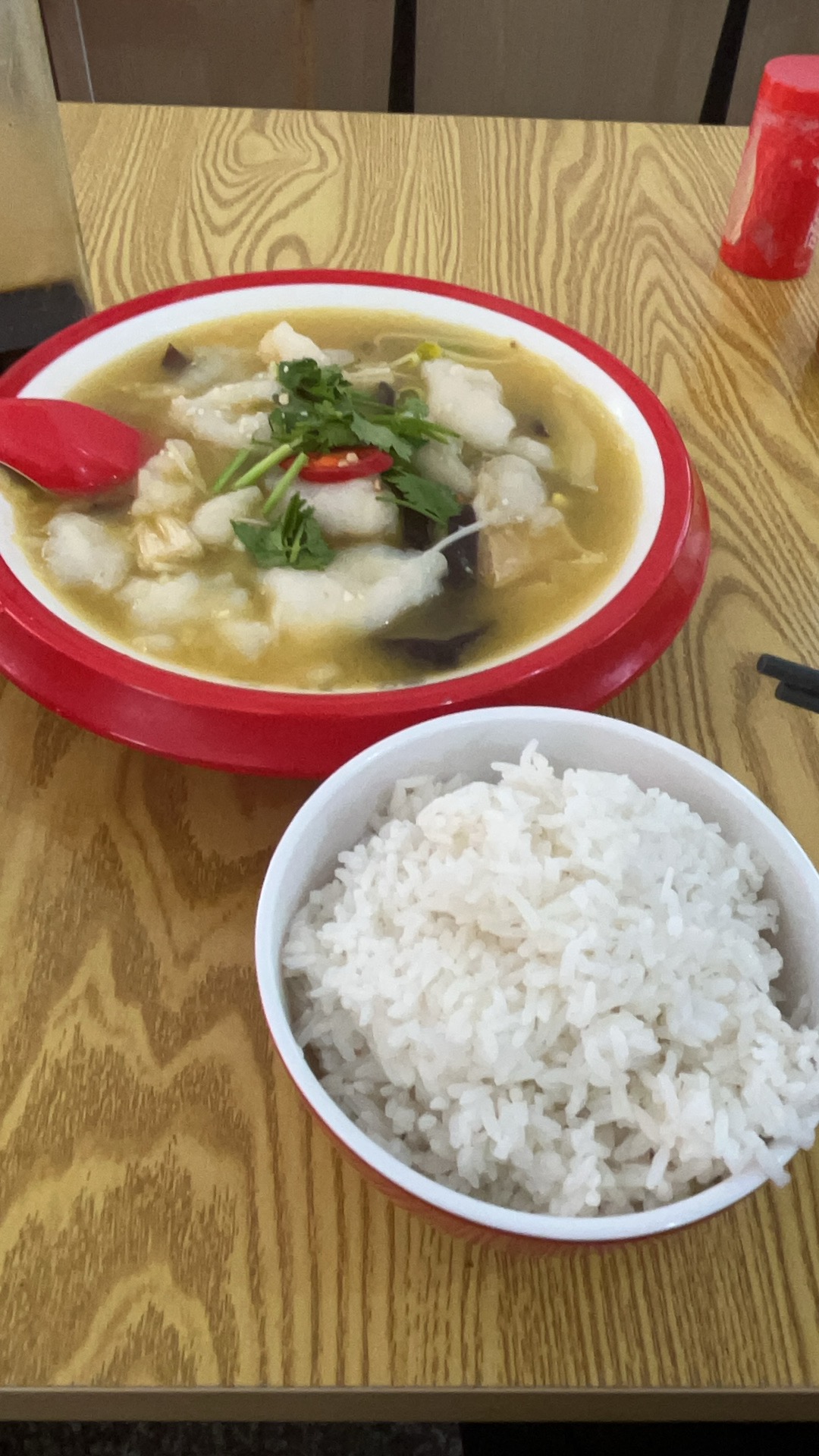 Fish with Rice | ["fish","rice","vegetables","sauce"] | ["fish:200g","rice:150g"] | |