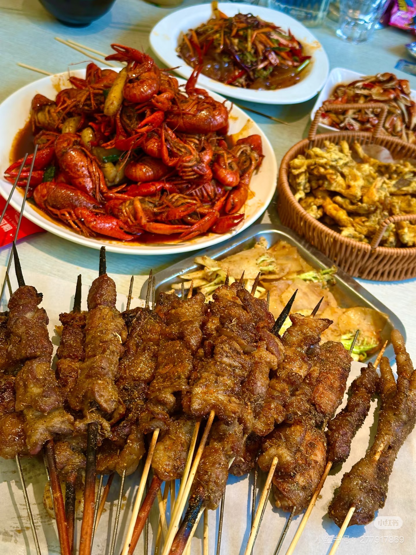 Grilled Skewers and Spicy Crawfish | ["crawfish","skewered meat","spices","sauce"] | ["crawfish:300g","skewered meat:200g"] | |