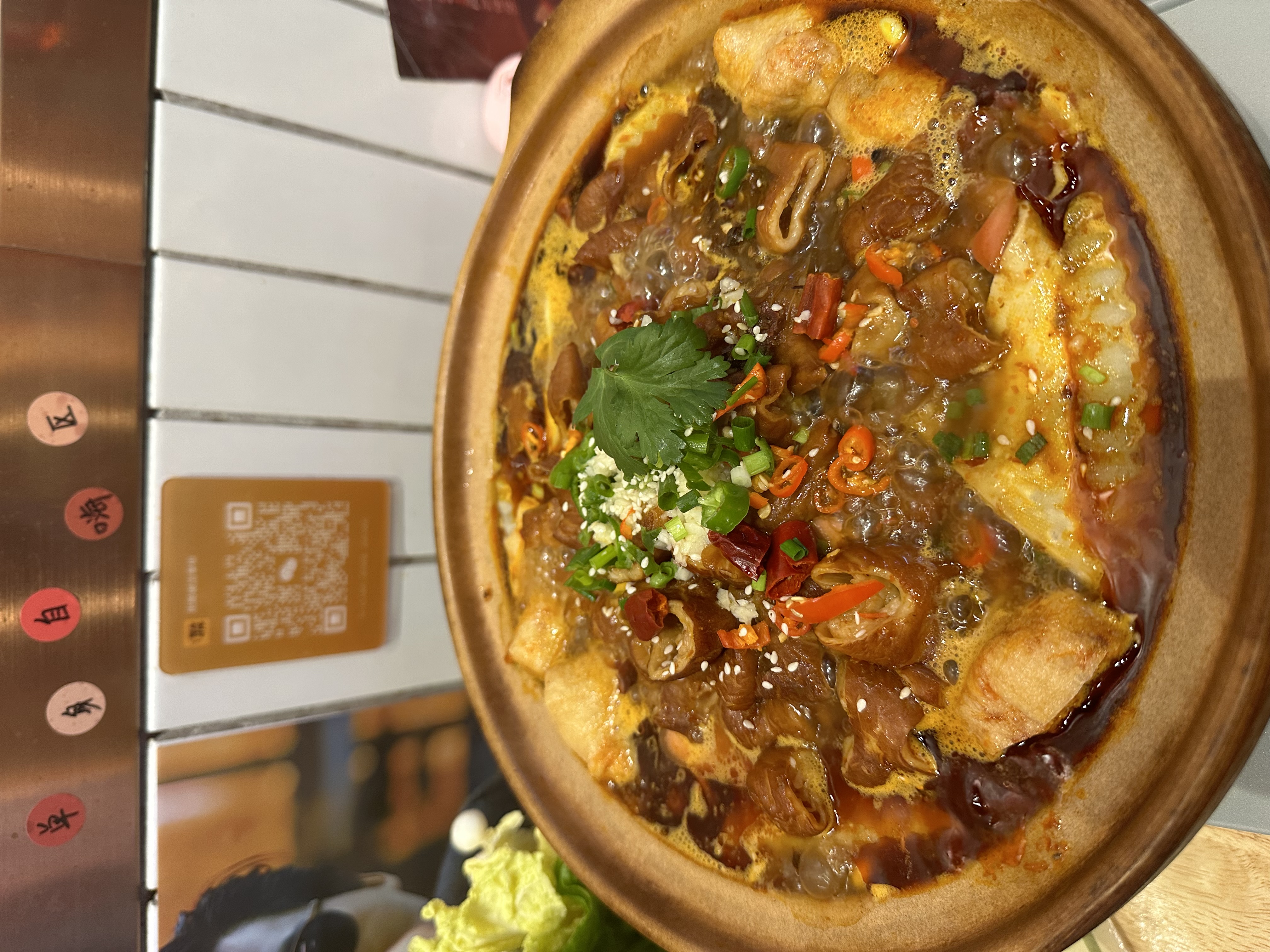 Spicy Meat Stew | ["meat","spicy sauce","green onions","chili peppers","cilantro"] | ["meat:300g","sauce:100g","vegetables:50g"] | |