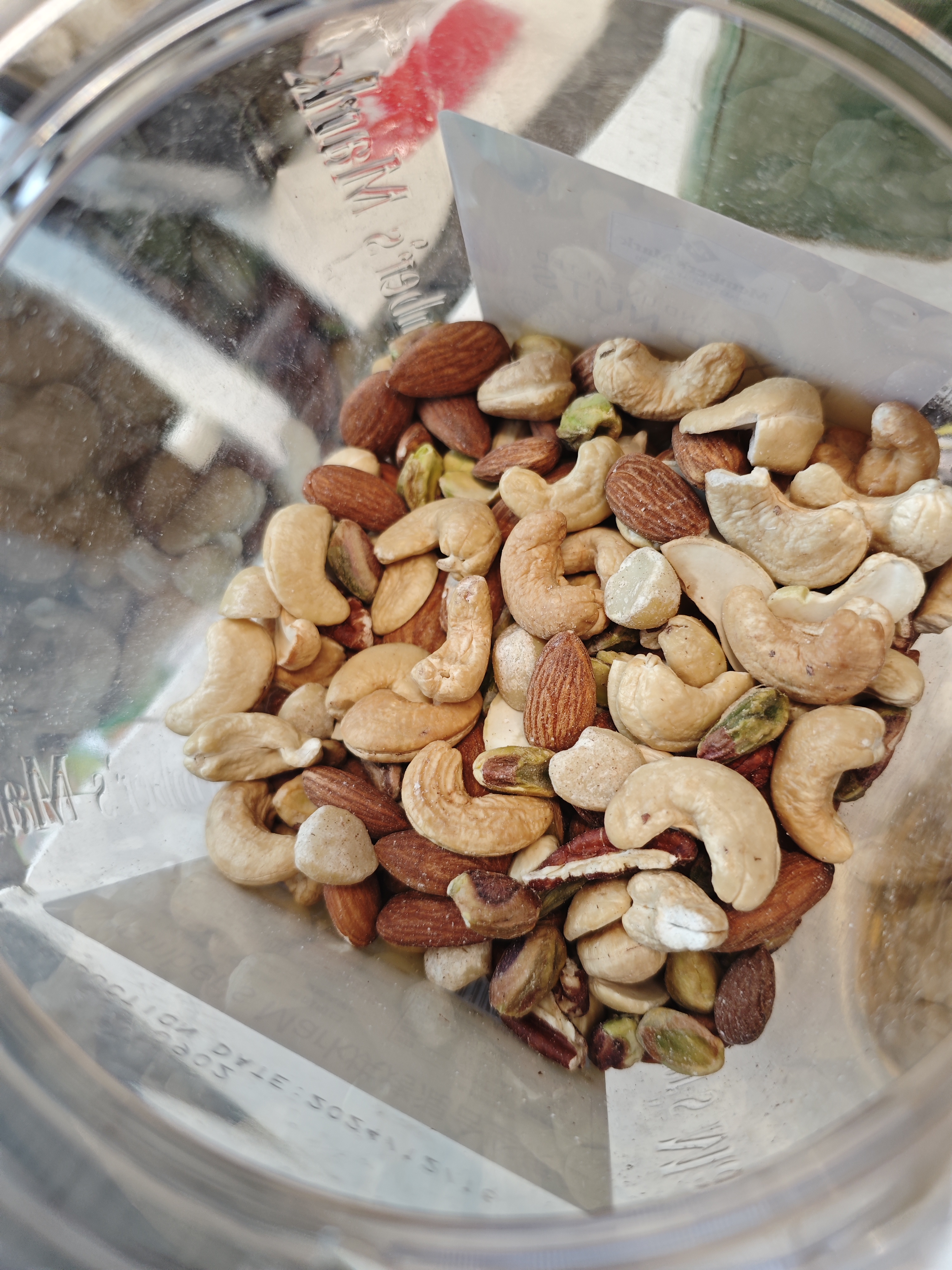 Mixed Nuts | ["cashews","almonds","pistachios"] | ["cashews:100g","almonds:100g","pistachios:100g"] | |