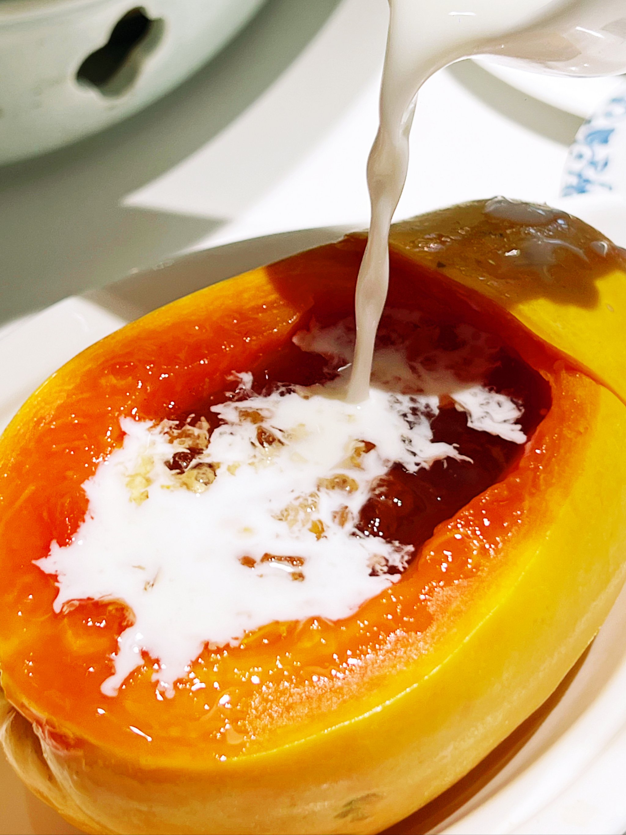 Papaya with Cream | ["papaya","cream"] | ["papaya:300g","cream:50g"] | |