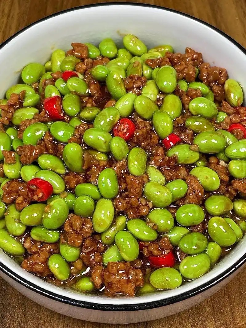 Stir-fried Edamame with Meat | ["edamame","ground meat","soy sauce","red chili"] | ["edamame:300g","ground meat:150g"] | |
