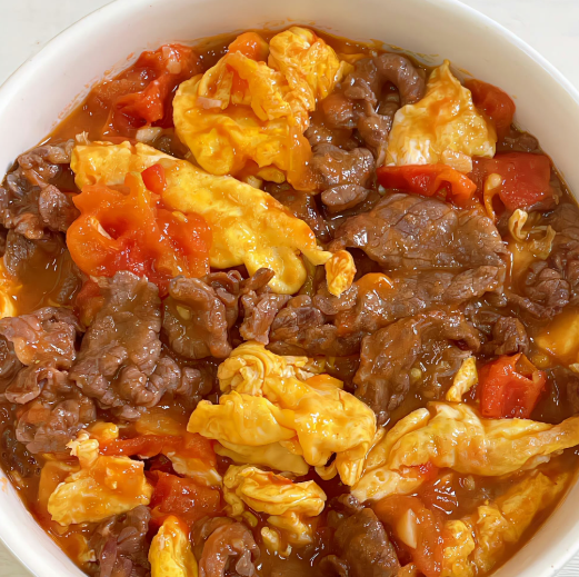 Beef and Egg Stir-fry | ["beef","eggs","tomatoes"] | ["beef:200g","eggs:100g","tomatoes:50g"] | |