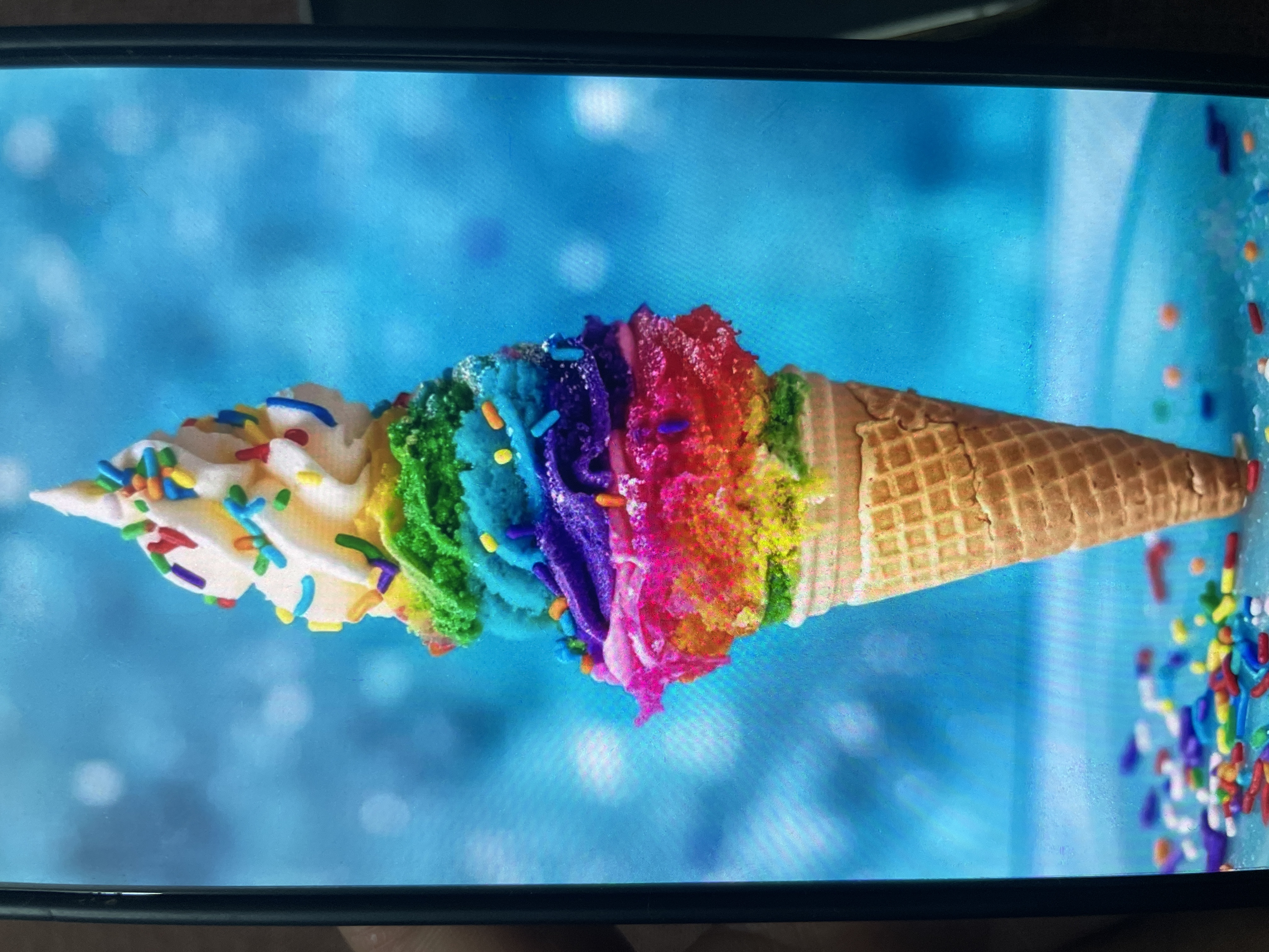 Rainbow Ice Cream Cone | ["ice cream","wafer cone","sprinkles"] | ["ice cream:200g","cone:50g"] | |