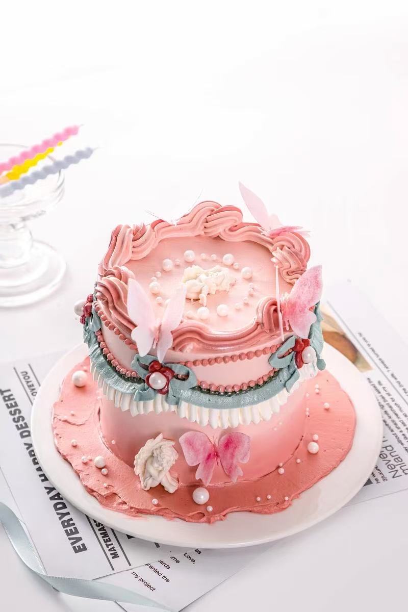 Decorated Cake | ["flour","sugar","butter","eggs","cream","food coloring"] | ["cake:200g"] | |