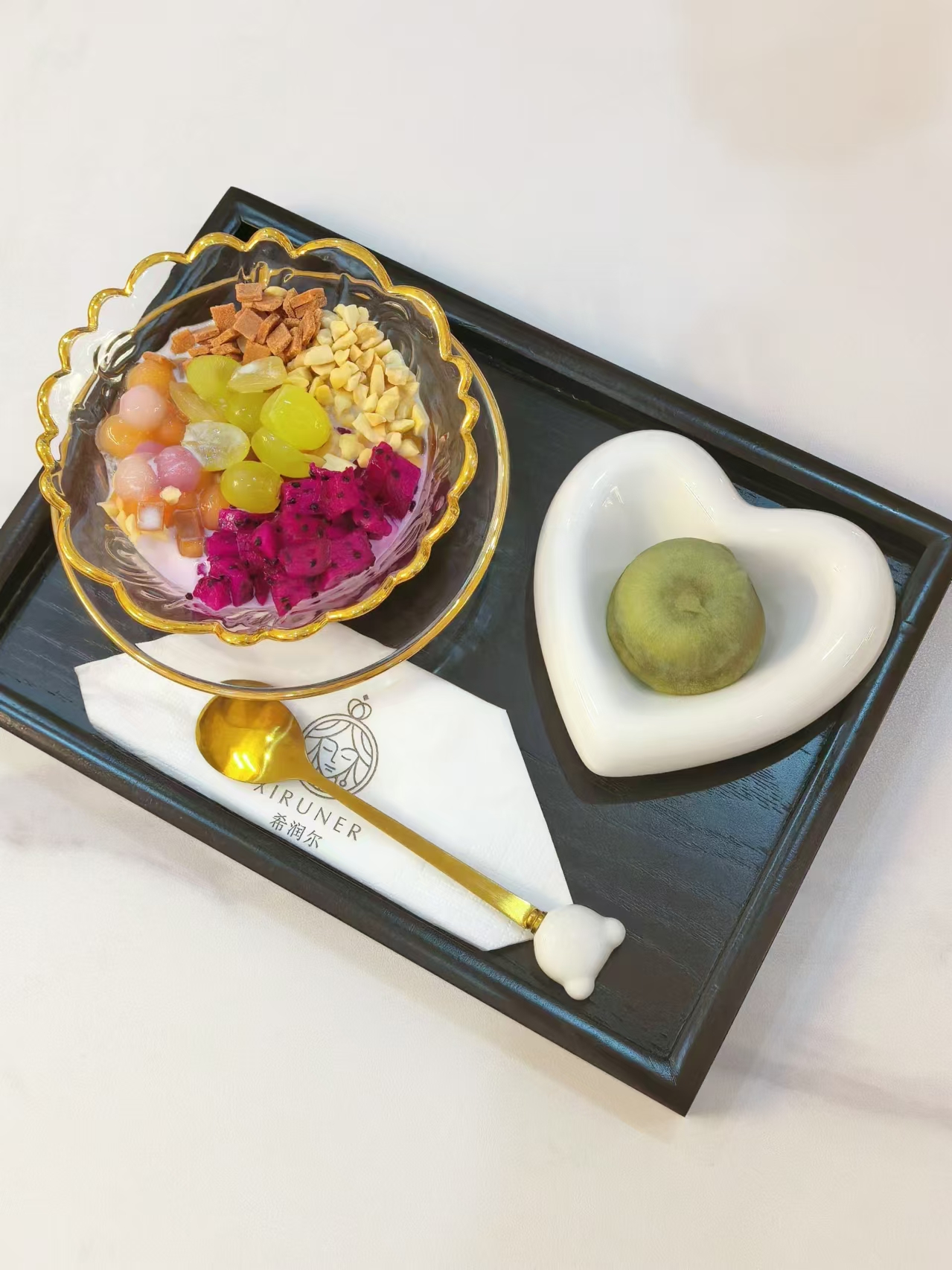 Fruit Salad | ["dragon fruit","grapes","melon","nuts","jelly"] | ["mixed fruits:300g","nuts:50g"] | |