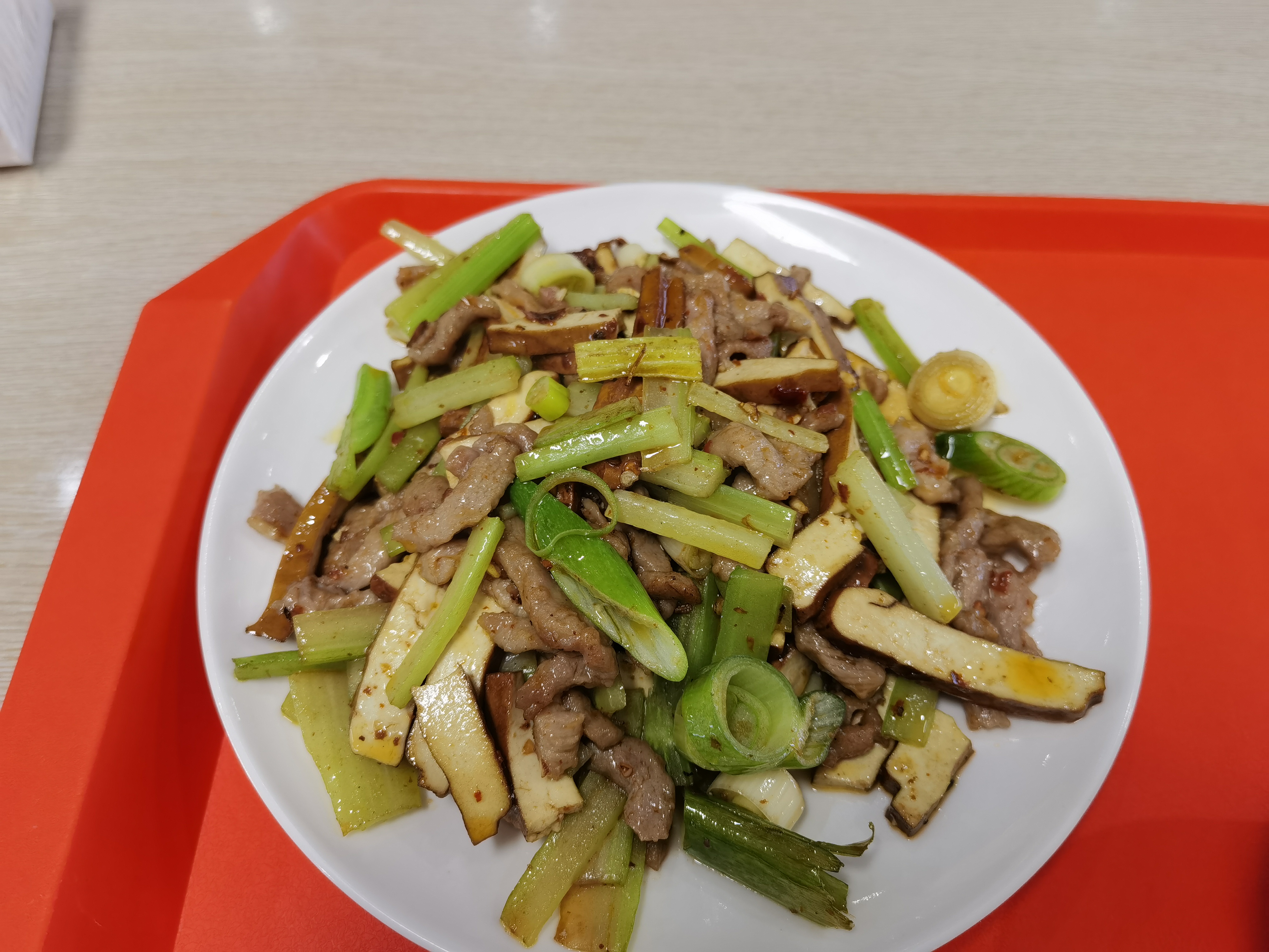 Spicy Stir-Fried Meat | ["meat","dried red peppers","green onions","seasoning"] | ["meat:300g","peppers:50g","seasoning:10g"] | |
