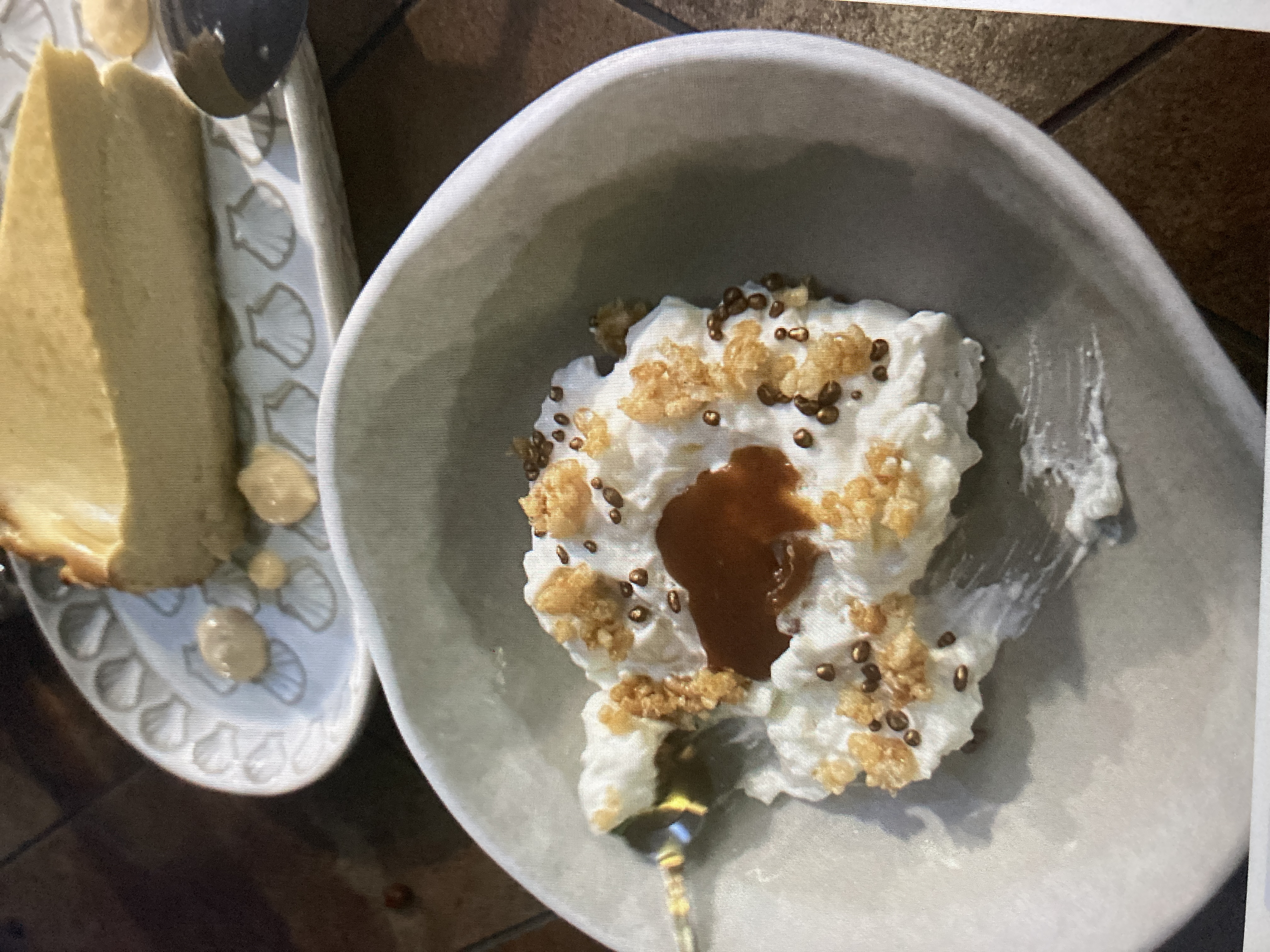Creamy Dessert | ["cream","syrup","granola"] | ["cream:200g","toppings:50g"] | |