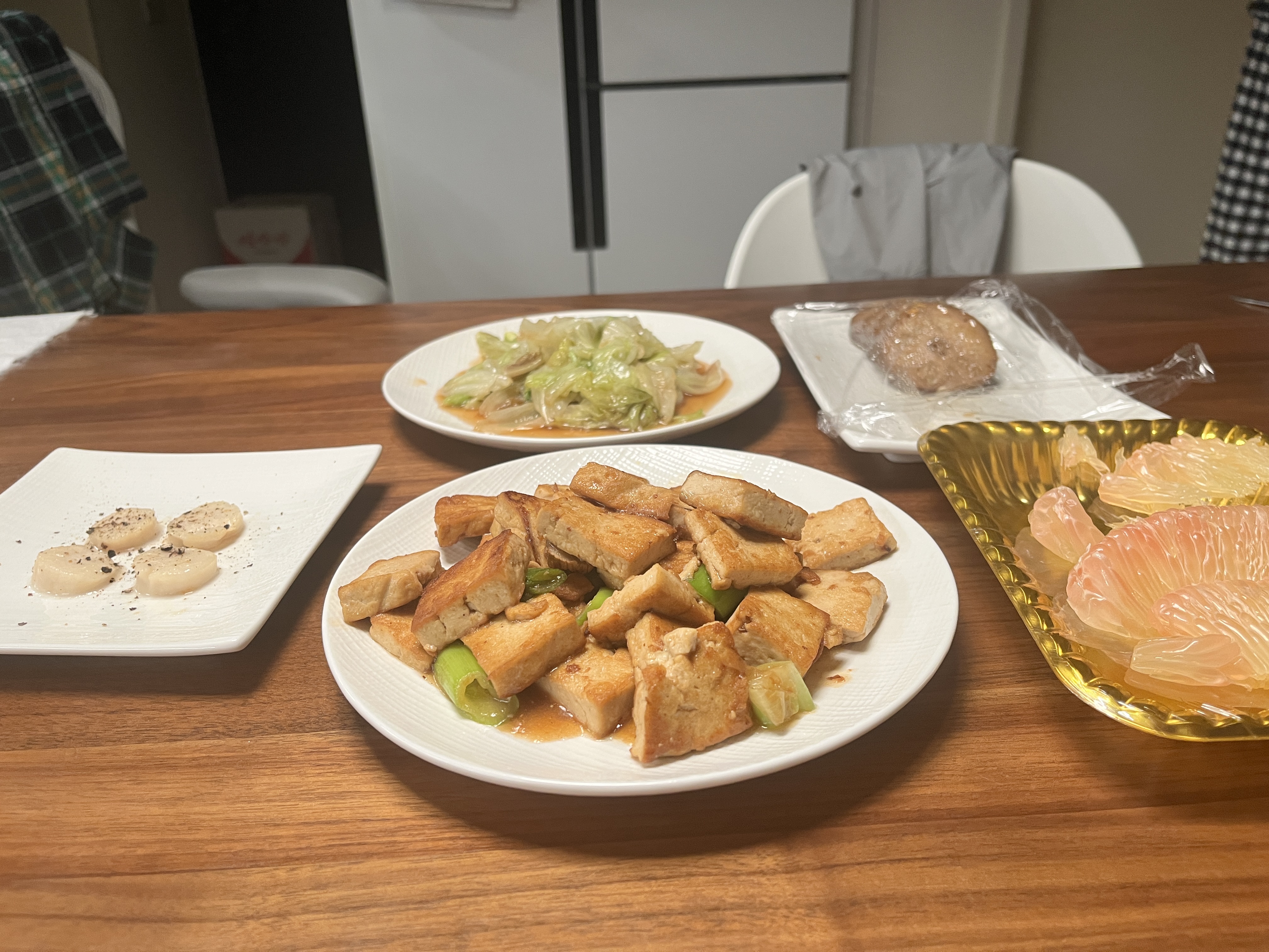 Stir-fried Tofu with Vegetables | ["tofu","green peppers","cabbage","seasoning"] | ["tofu:200g","vegetables:150g","rice:100g"] | |