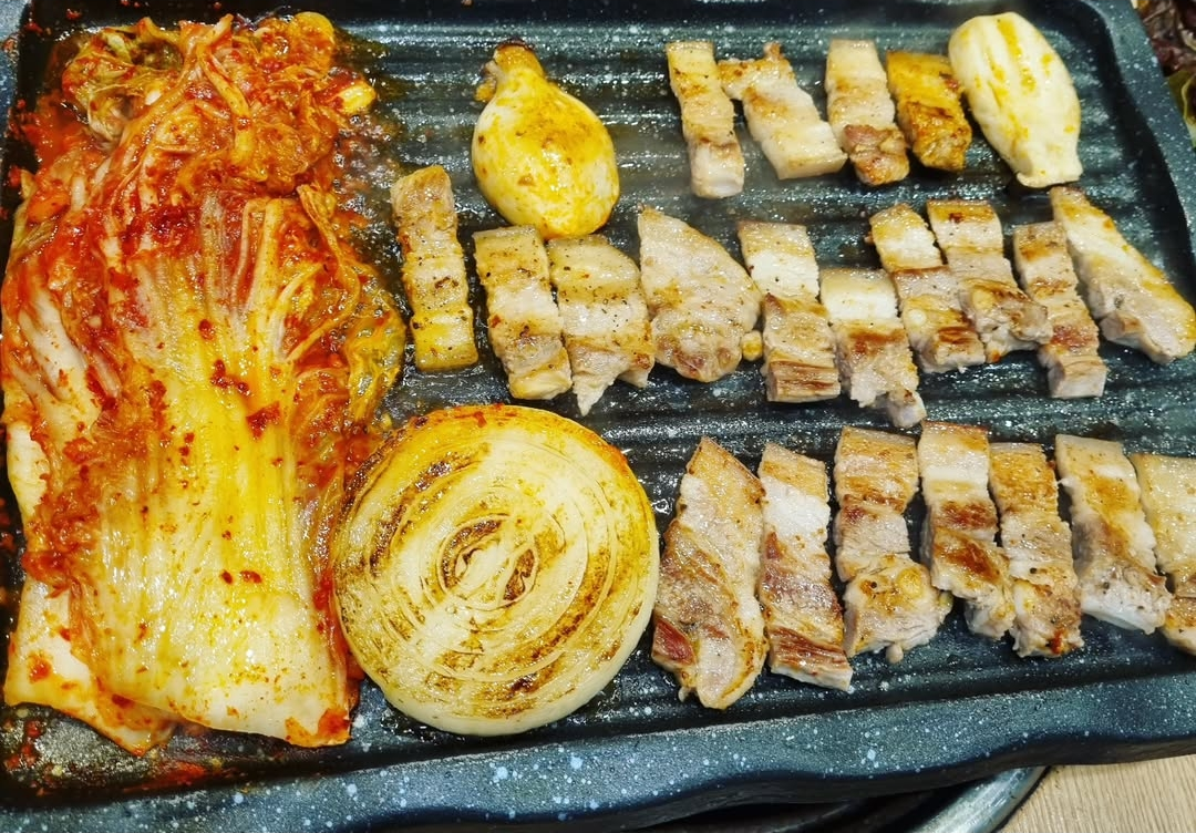 Grilled Pork Belly with Kimchi | ["pork belly","kimchi","onion","grilled lemon"] | ["pork_belly:300g","kimchi:100g","onion:50g"] | |