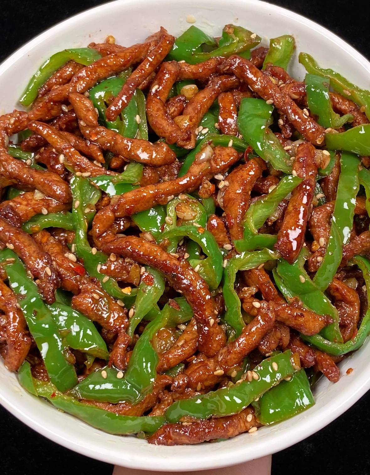 Stir-fried Green Peppers with Meat | ["meat","green peppers","sesame seeds","sauce"] | ["meat:200g","green peppers:150g"] | |