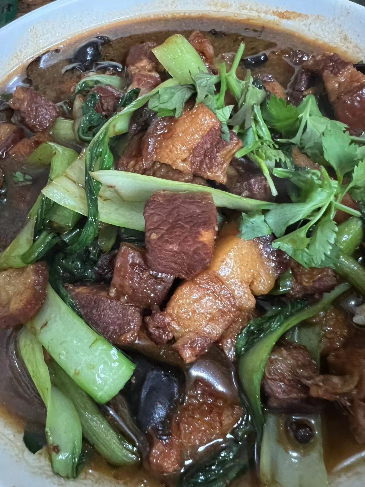 Braised Pork with Greens | ["pork","bok choy","soy sauce","garlic","ginger"] | ["pork:300g","bok choy:150g","sauce:50g"] | |