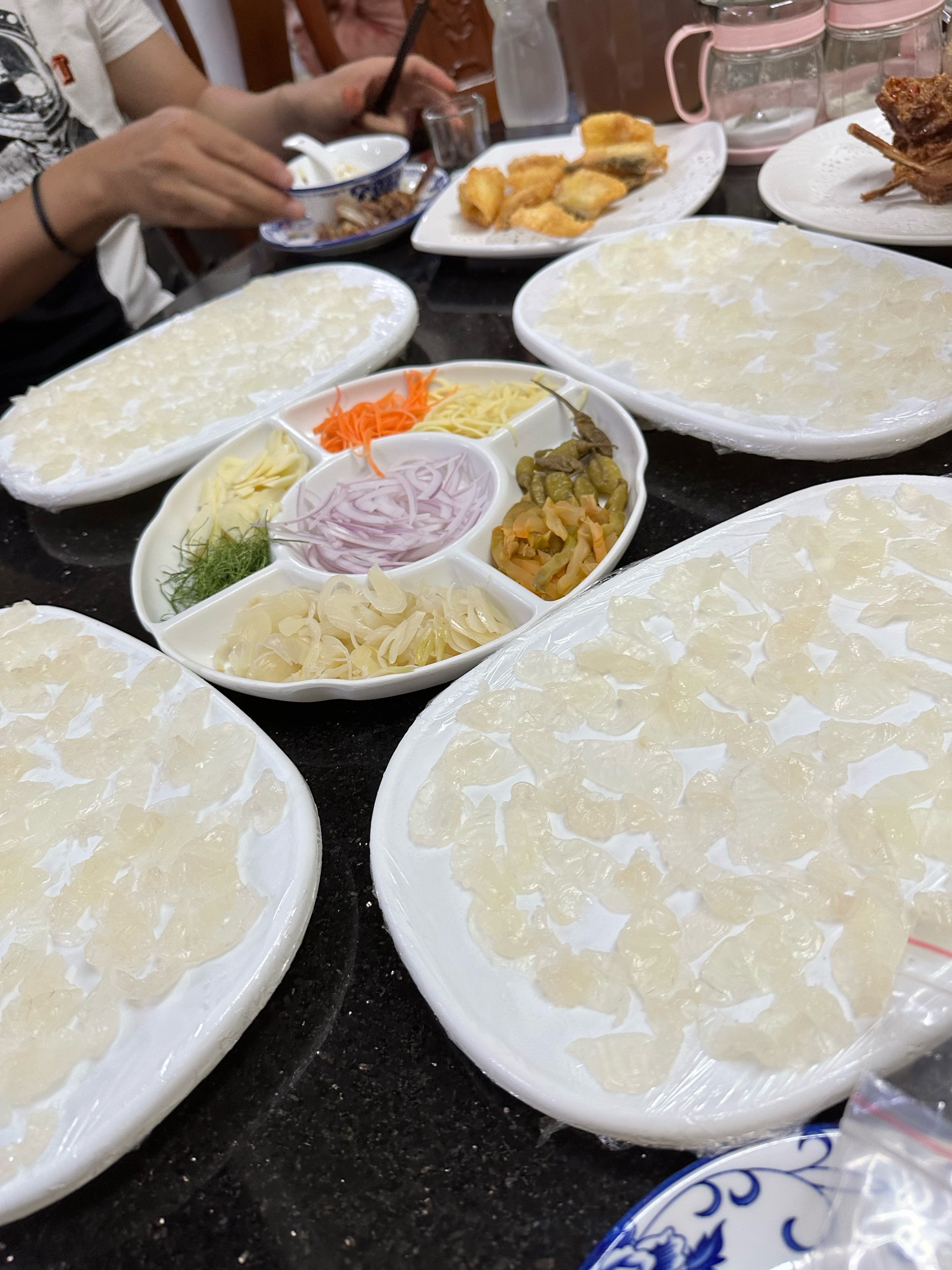 Mixed Vietnamese Dishes | ["noodles","carrots","onions","fried items","herbs"] | ["noodles:200g","vegetables:150g","fried items:250g"] | |